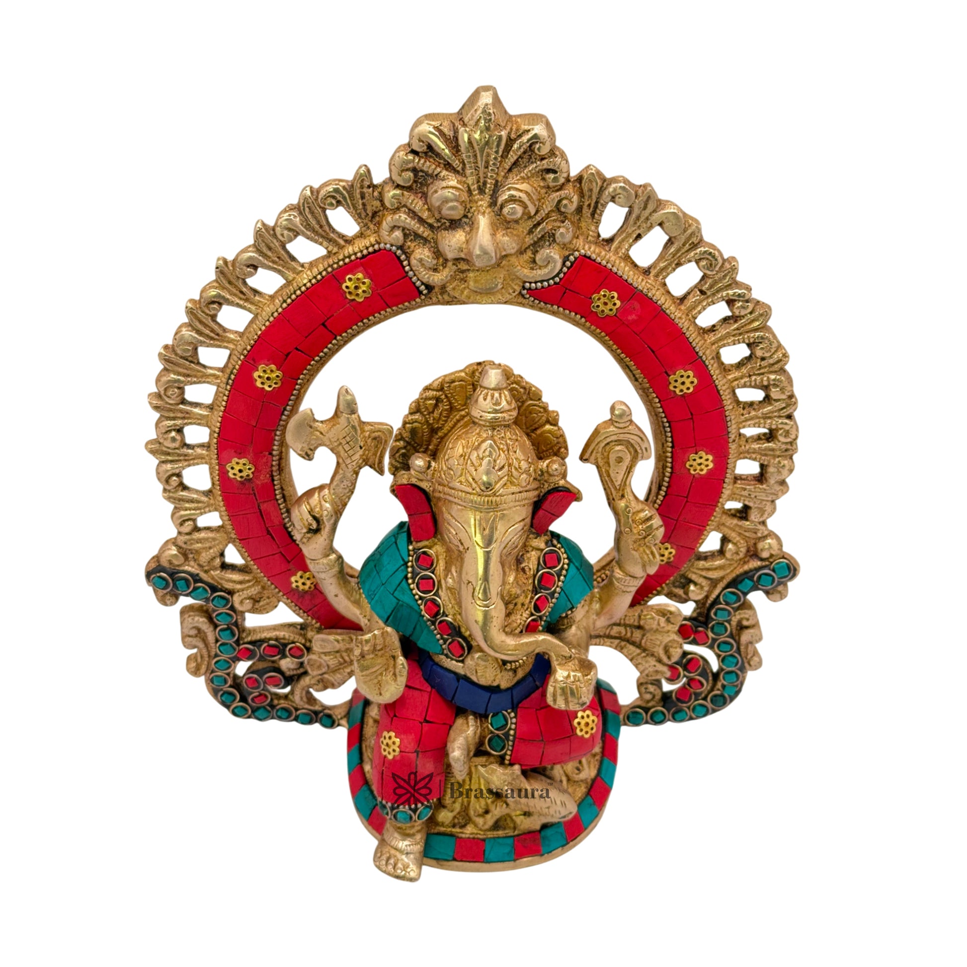 Add a touch of divine elegance and vibrant artistry to your space with this Brass Gemstone Work Ring Ganesha Statue. Featuring Lord Ganesha seated gracefully within a beautifully designed circular (ring) frame, this statue is adorned with intricate gemstone inlay work that enhances its spiritual charm and visual appeal.