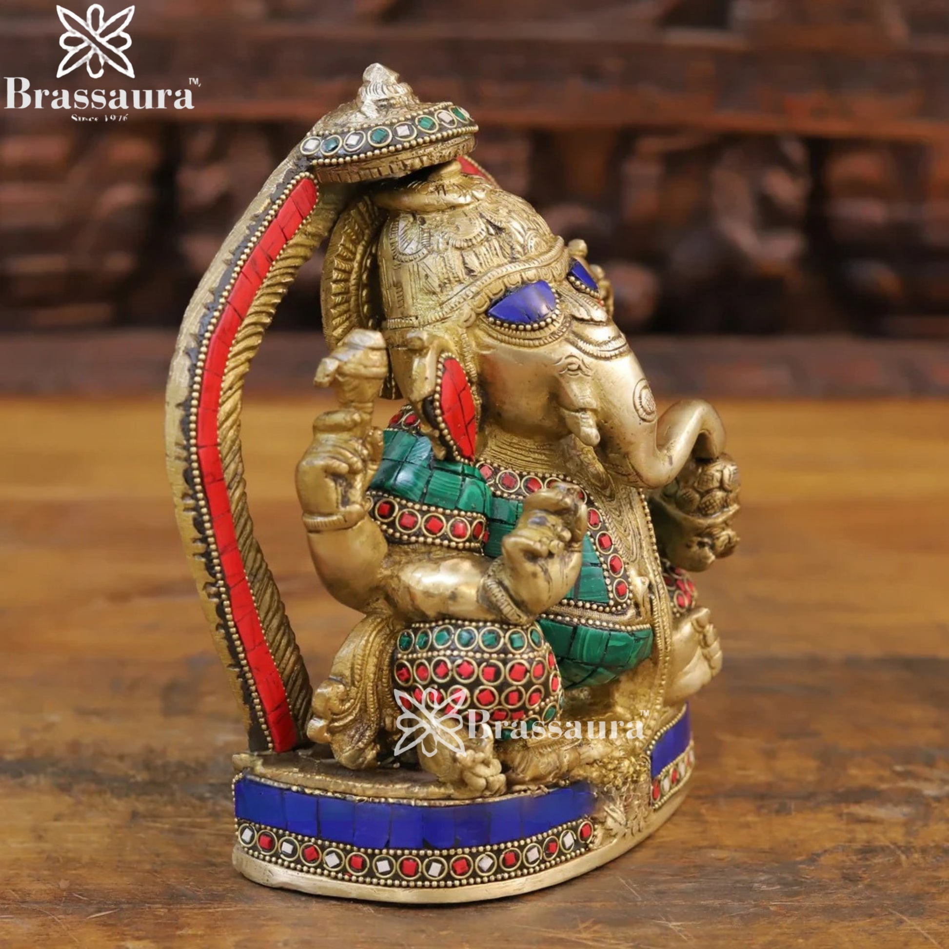 Brass Gem Stone Work Ring Ganesha Weight 3.8 Kg & Height 8.5 Inch