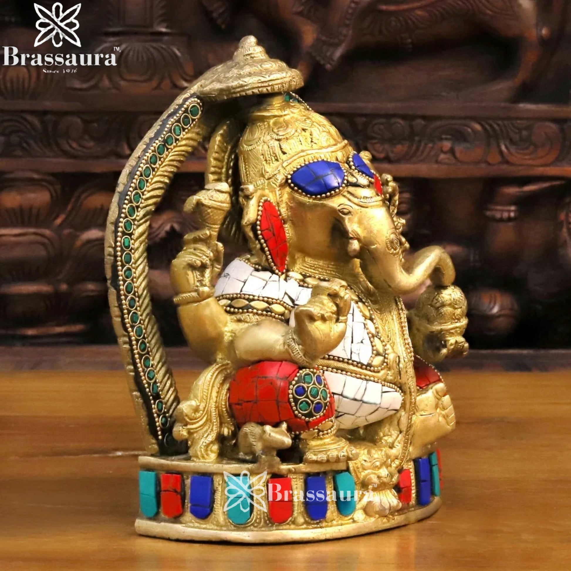 Brass Gem Stone Work Ring Ganesha Statue – 12 Inch | 9 Kg