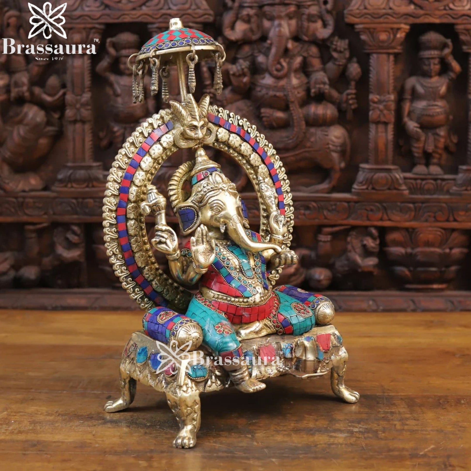 Brass Gem Stone Work Ring Ganesha Weight 9 Kg & Height 18 Inch