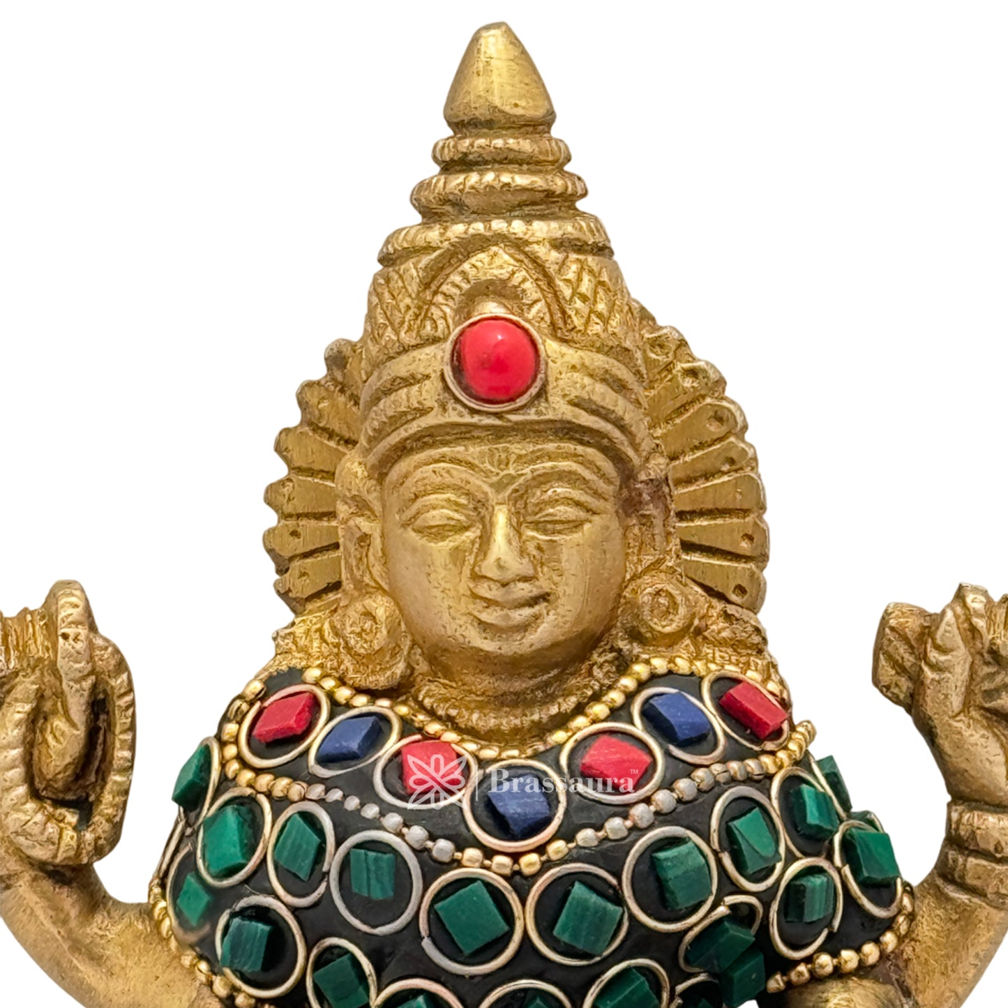 Brassaura™ Artistic Brass Saraswati Murti with Gem Stone Detailing – Height 4.8 Inches & Weight 0.8 Kgs