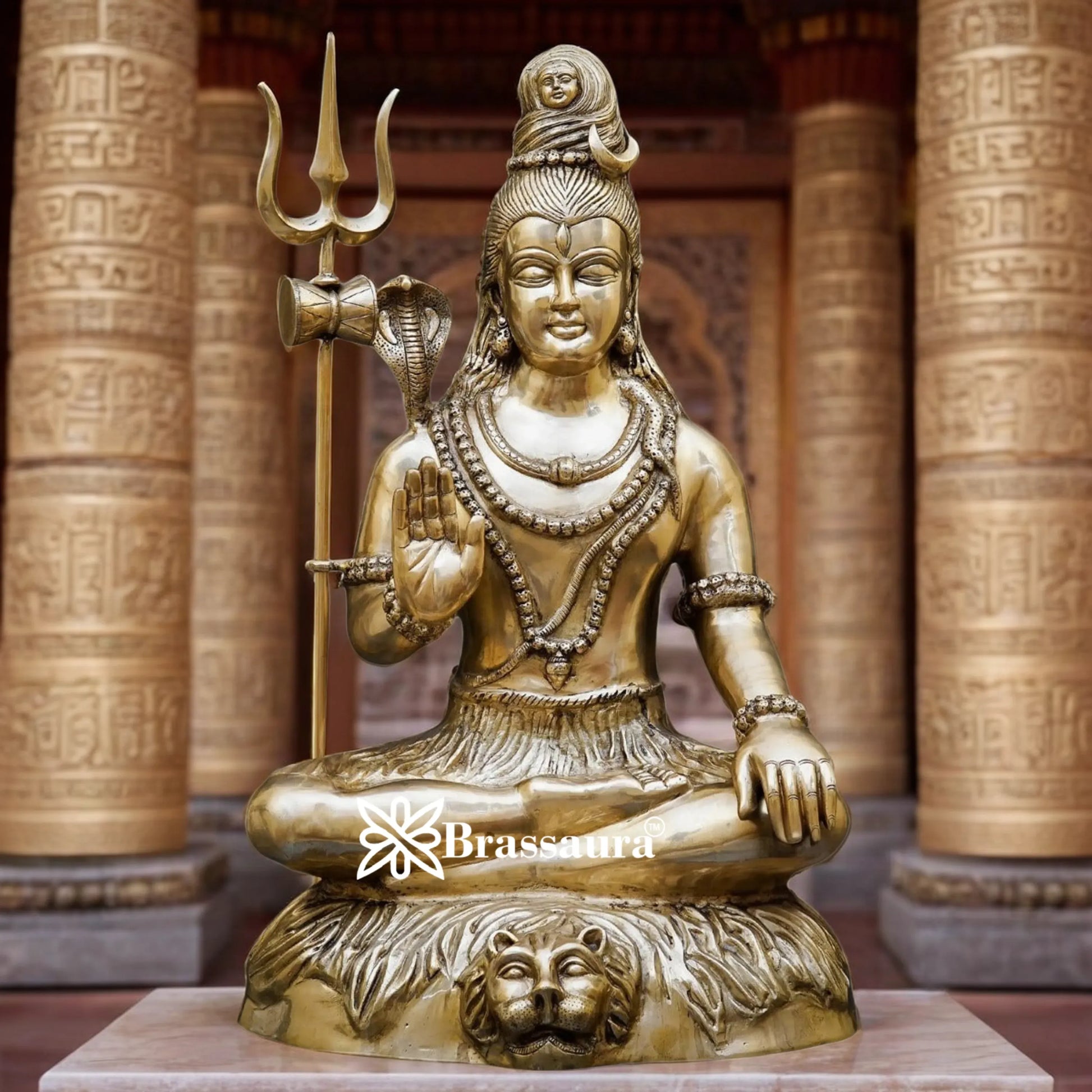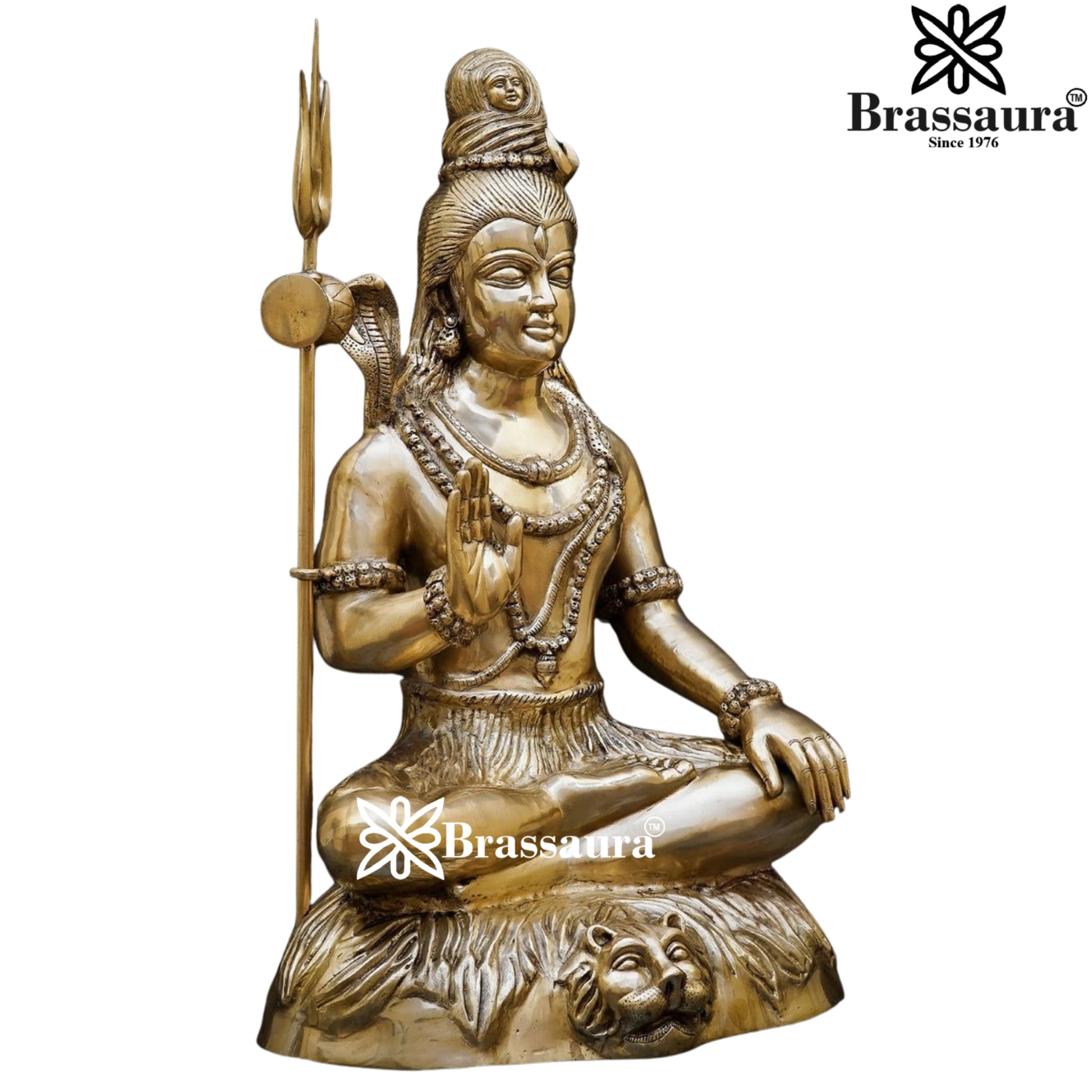 Brassaura™ Classic Brass Shiva Murti – Height 34" & Weight 35 Kgs | Sacred Idol for Temple & Home