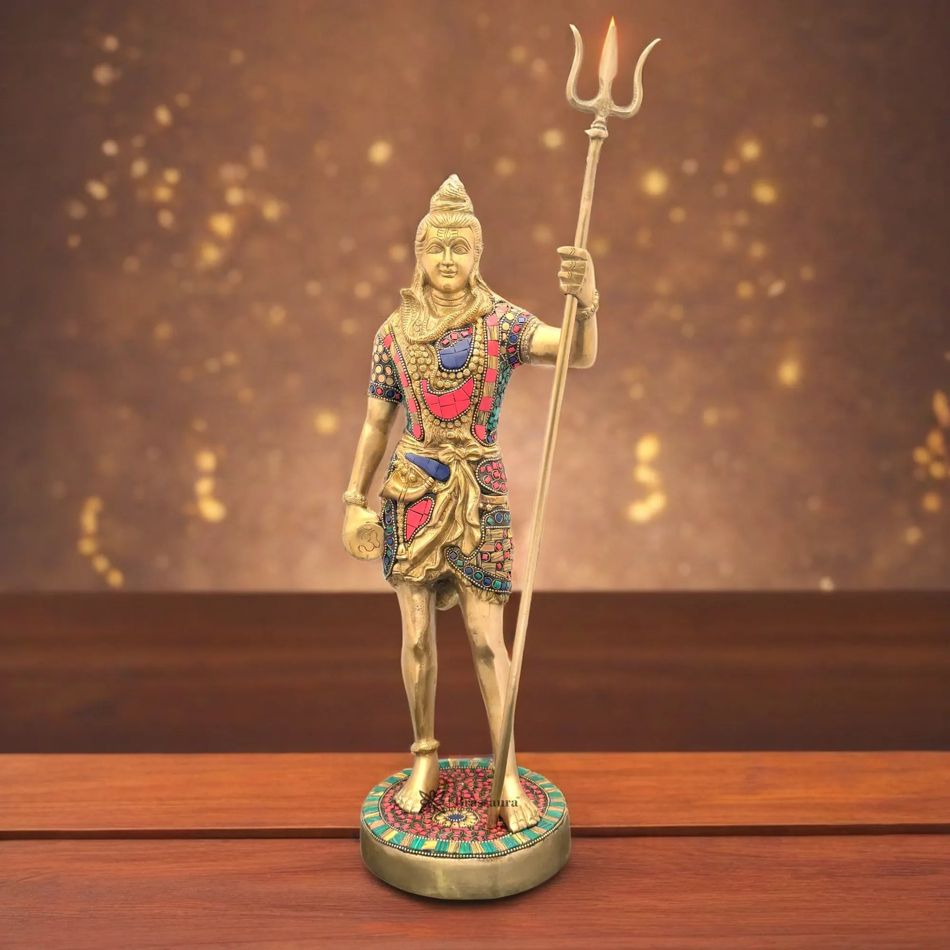 Brassaura™ Brass Gem Stone Work Standing Shiva Murti – Height 19.2 Inches & Weight 6.1 Kgs | Classic Idol