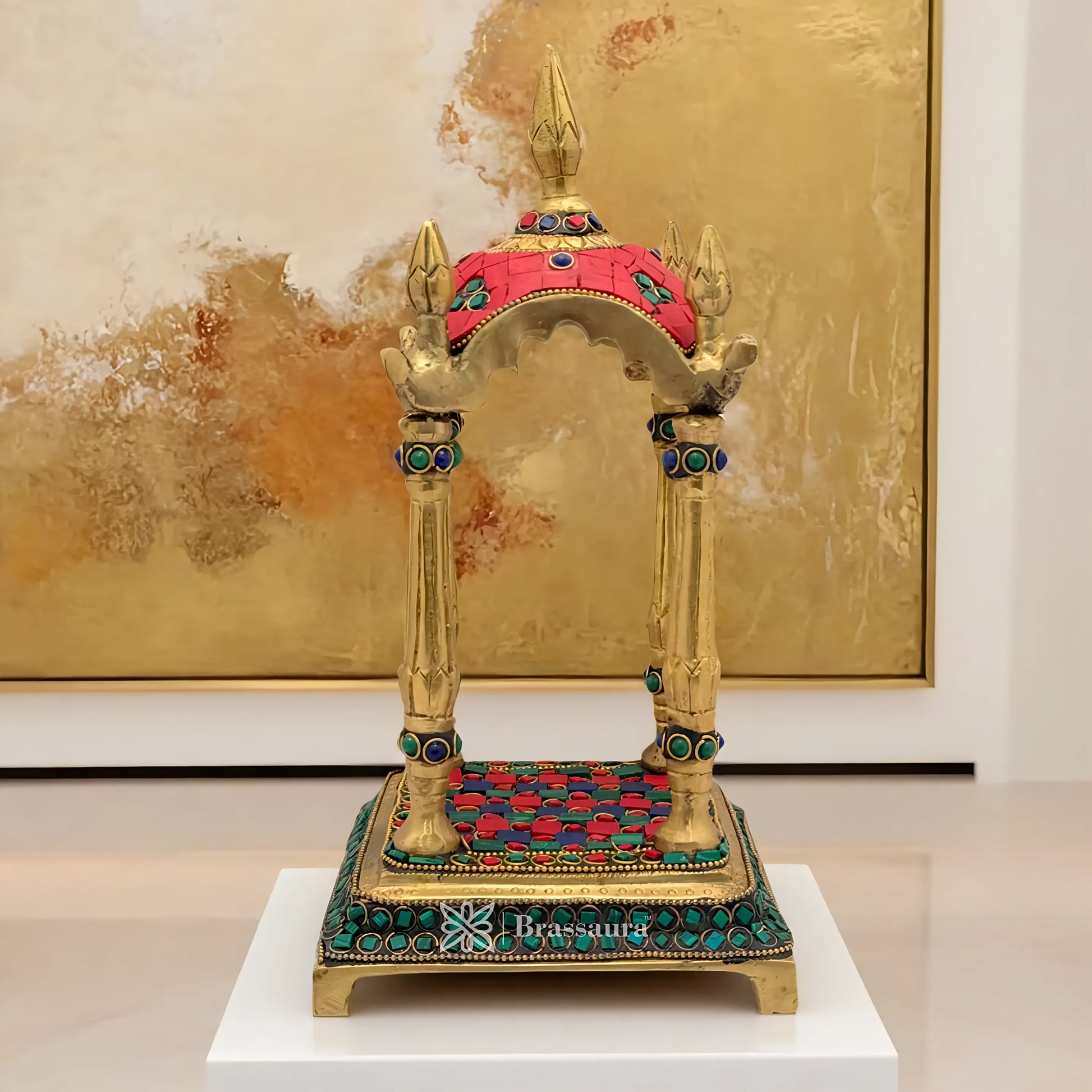Brassaura™ Brass Gem Stone Work Temple Statue – Height 10.4 Inches & Weight 2.3 Kgs