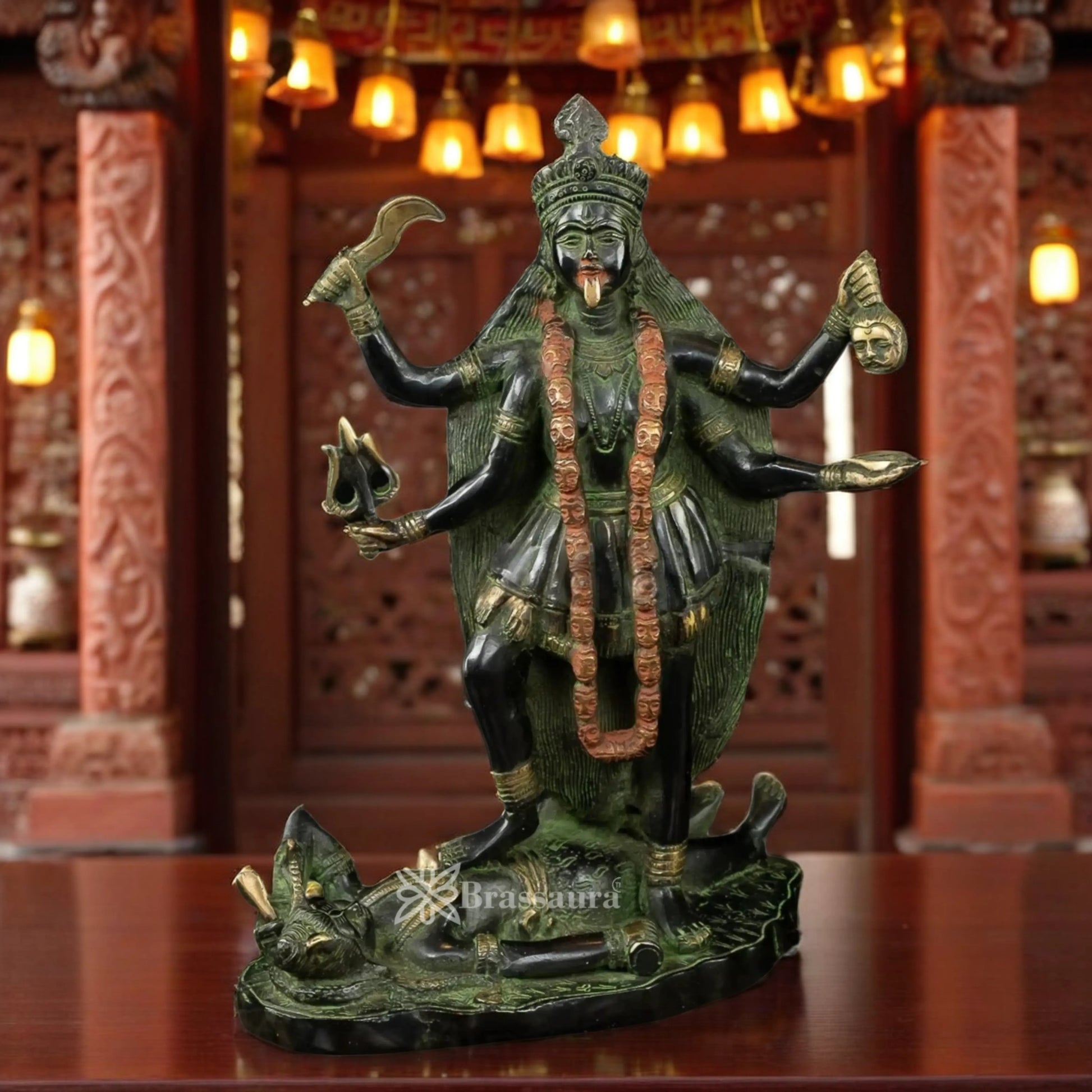 Brassaura™ Traditional Brass Green Patina Kali Maa Idol – Height 14 Inches & Weight 6.4 Kgs | Puja & Temple Statue