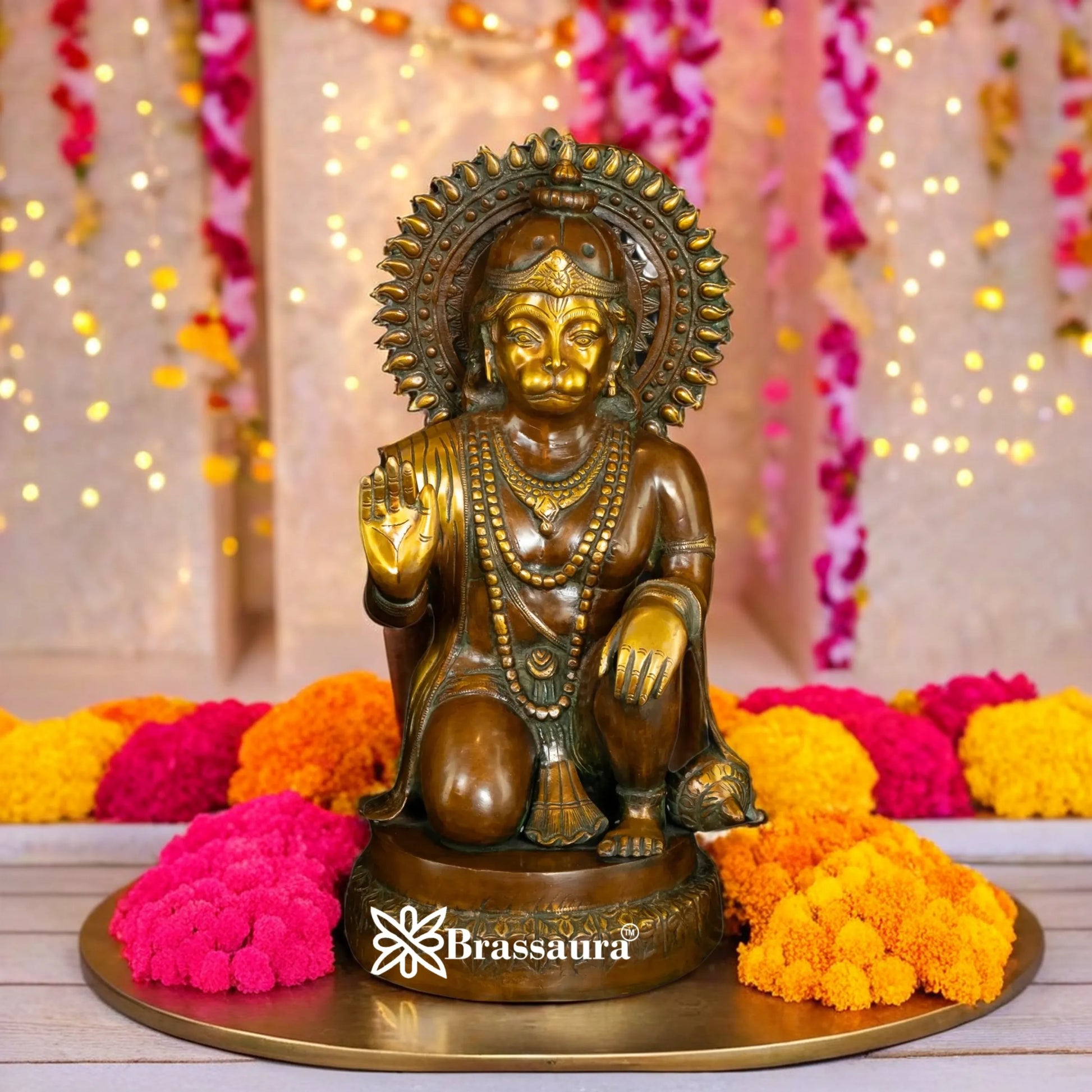 Brassaura™ Traditional Brass Hanuman Idol – Height 19 Inches & Weight 15.5 Kgs | Devotional Figurine