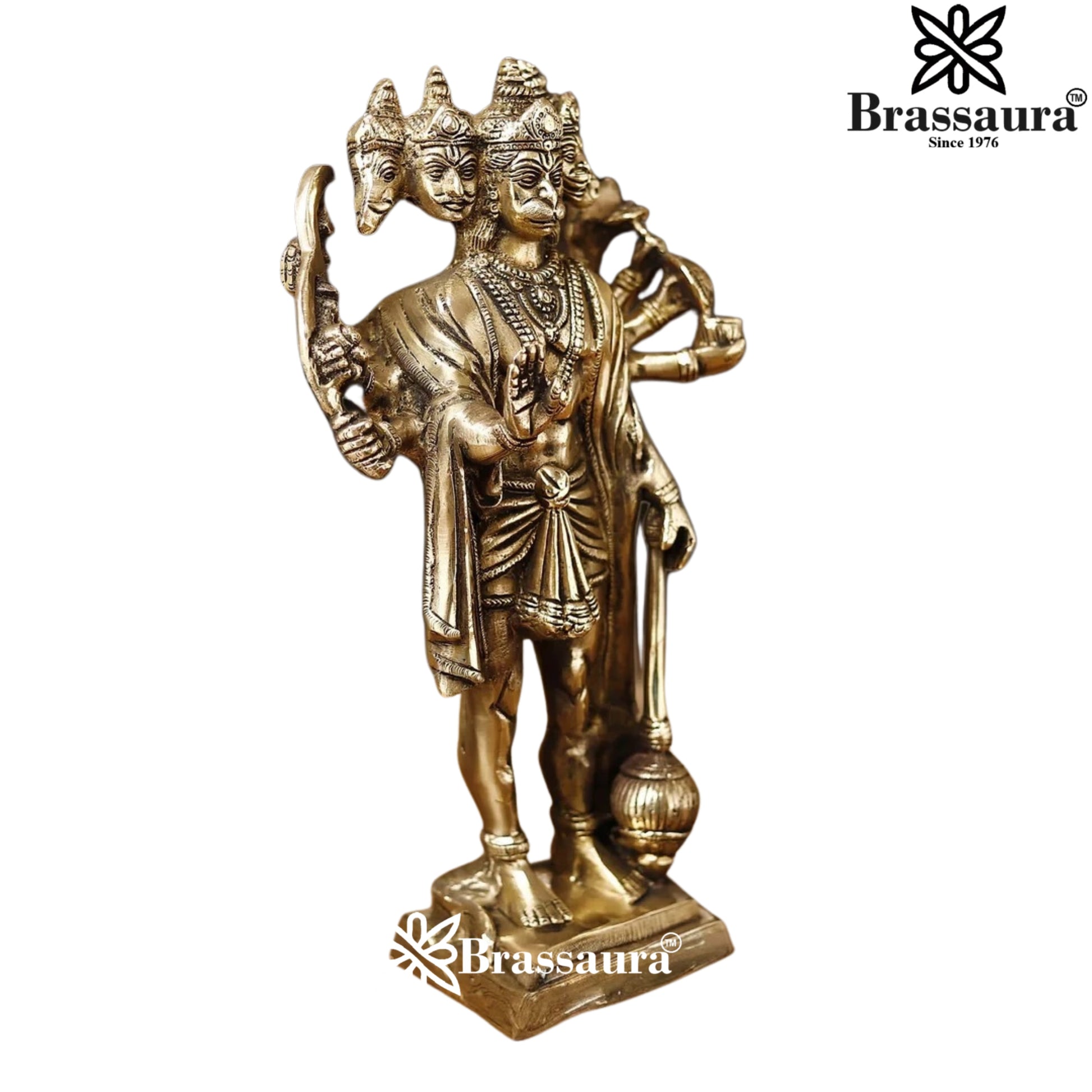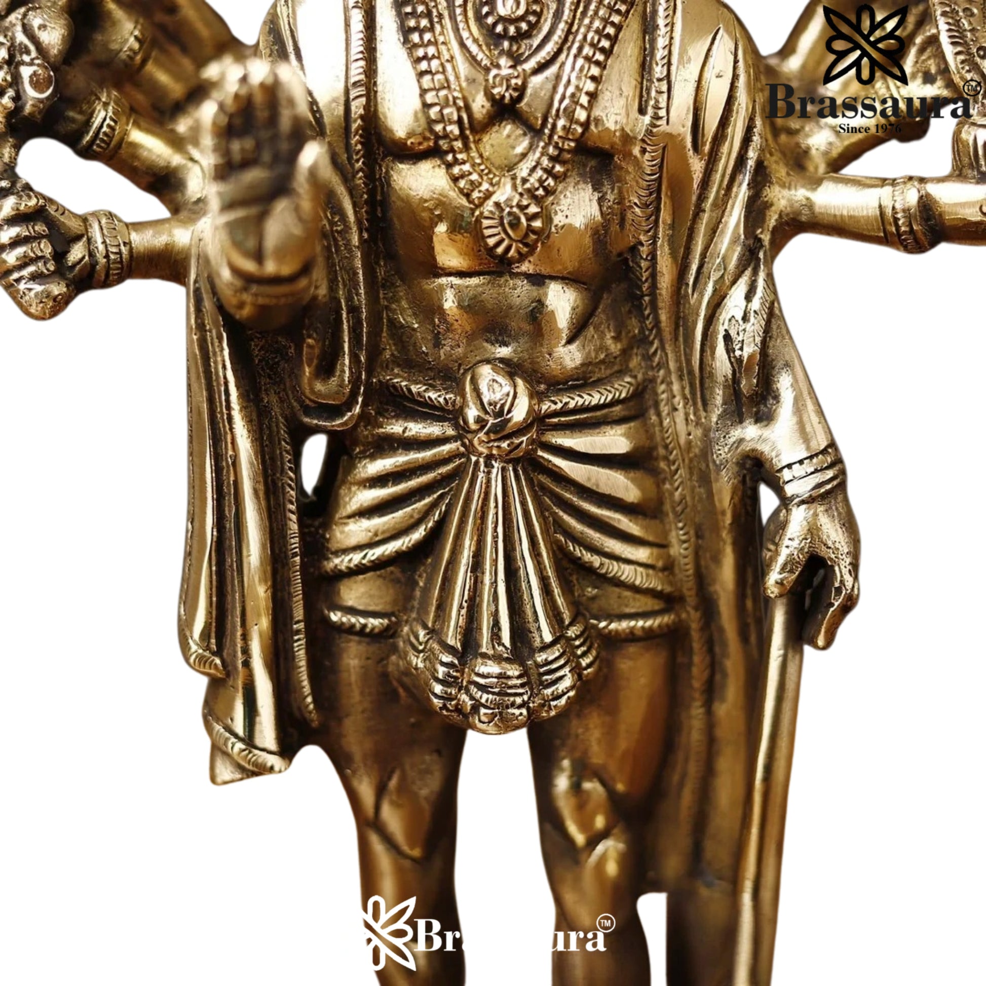 Brassaura™ Brass Panchmukhi Hanuman Idol for Pooja Room – Height 13.5 Inches & Weight 4.62 Kgs | Classic Décor