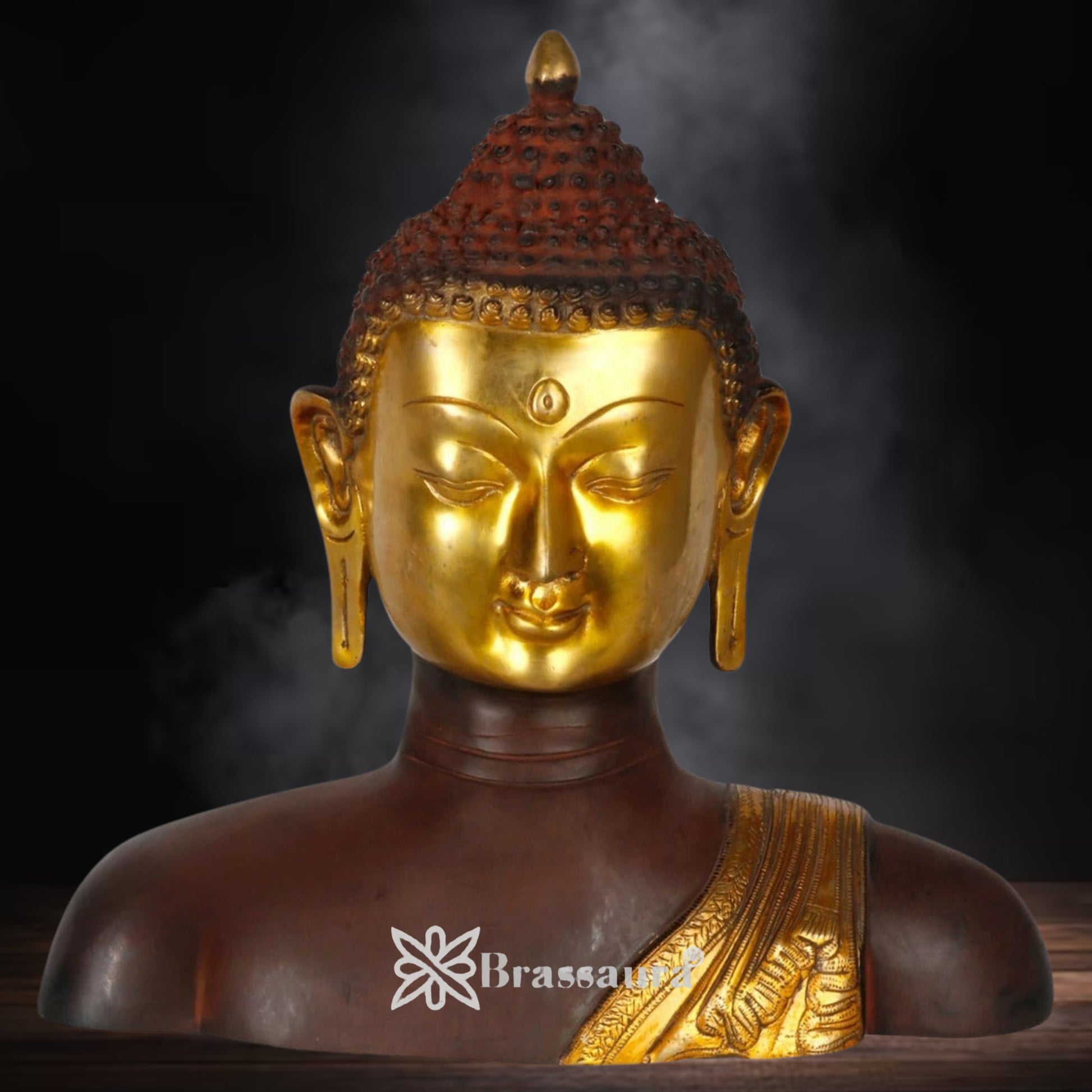 This Brass Head Buddha measures 14 Inch in height and weighs 10.5 kg, crafted from solid brass with exquisite detailing. The tranquil expression captures serenity, wisdom, and spiritual calm.