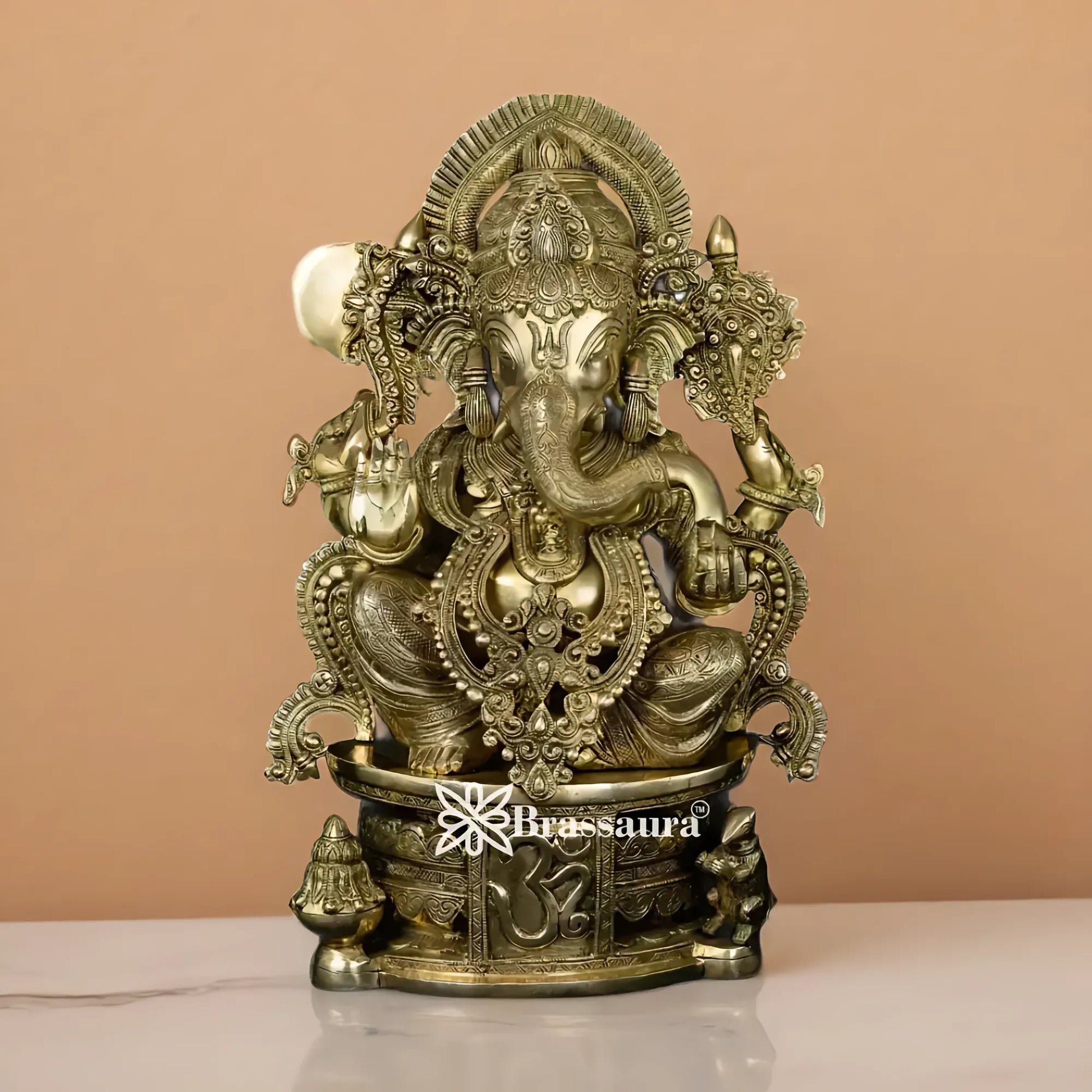 An extraordinary brass Ganesha idol that exemplifies artistic excellence and divine grandeur. Every curve and contour is skillfully hand-detailed, radiating serenity and auspiciousness — perfect for enhancing your home altar or temple décor.