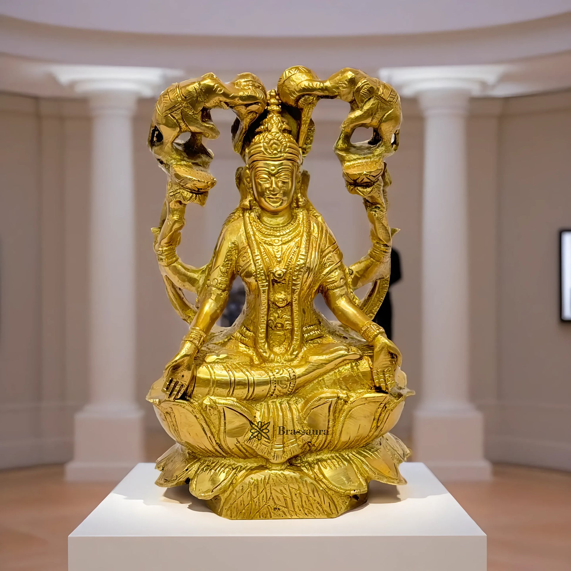 Brassaura™ Devotional Brass Laxmi Murti – Height 7.2 Inches & Weight 2 Kgs | Temple Statue