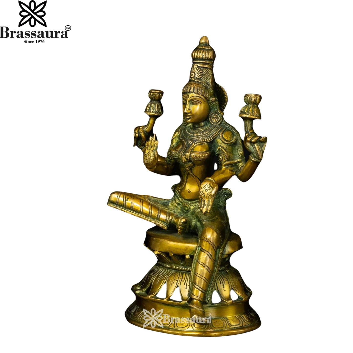Brassaura™ Artistic Brass Laxmi Idol – Height 12 Inches & Weight 3.9 Kgs | Home & Puja Décor