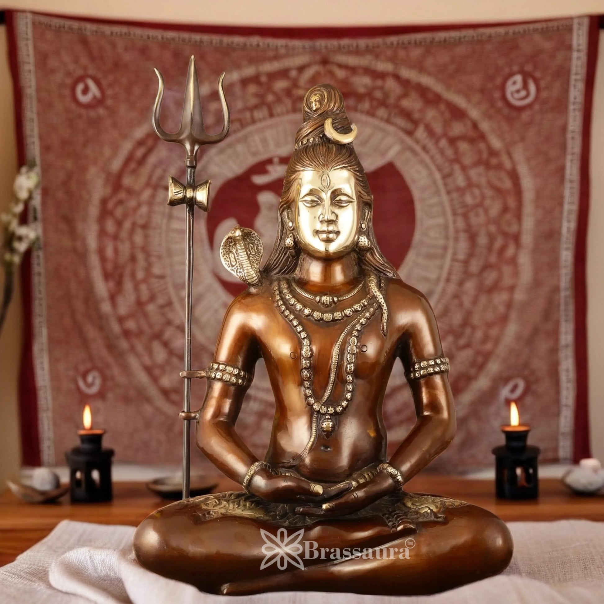 Brassaura™ Brass Lord Shiva Murti – Height 20 Inches & Weight 12 Kgs | Sacred Home Décor
