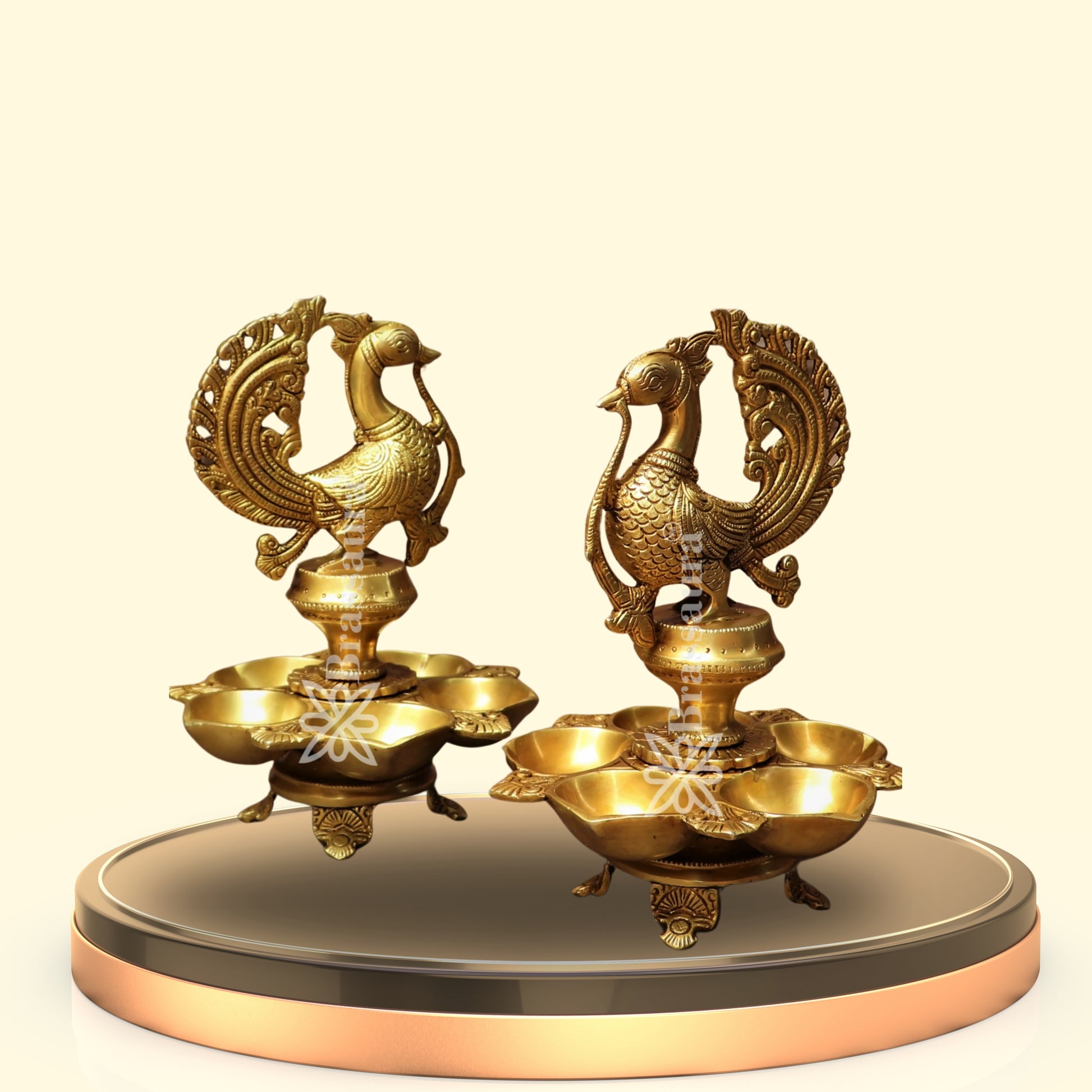 🔹 Design: Traditional Peacock Motif with Deep Oil Bowl