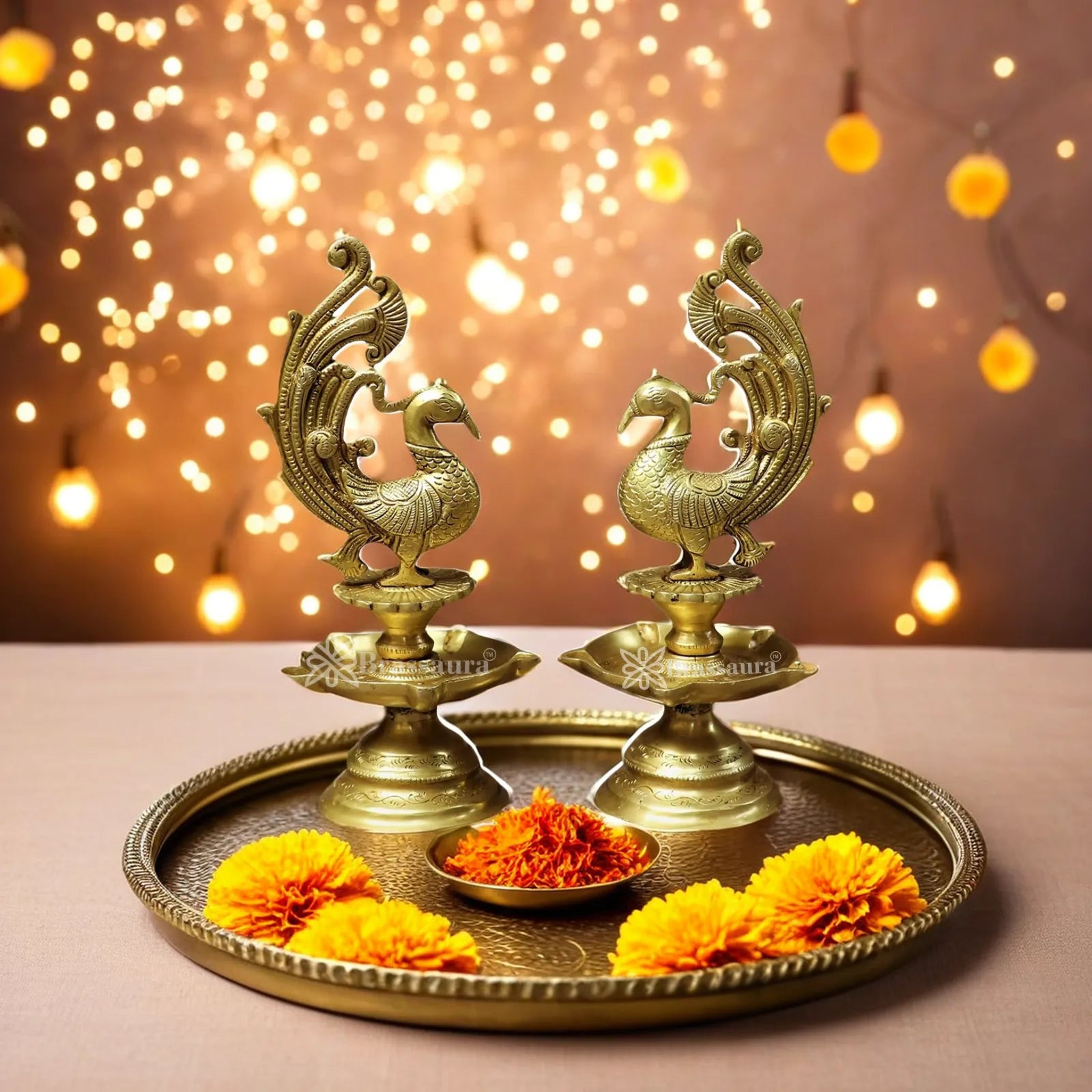 Brass Peacock Oil Lamp Diya Weight 4.5 Kg And Height 11 Inch