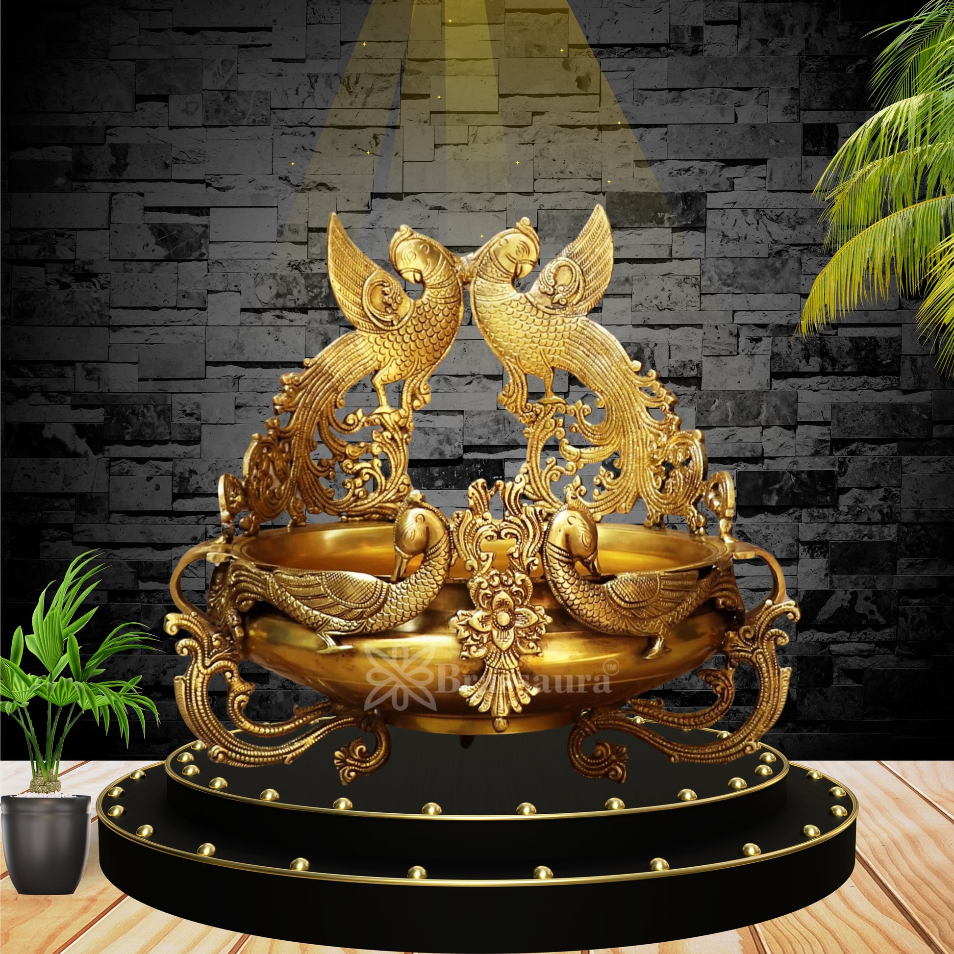 Brass Peacock Urli Statue – 15.5 Inch | 11.3 Kg