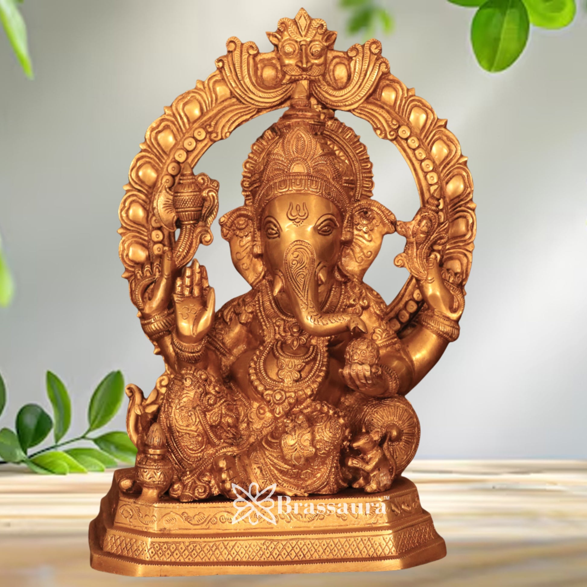 Brass Ring Ganesha Statue Weight 10.7 Kg & Height 15.2 Inch