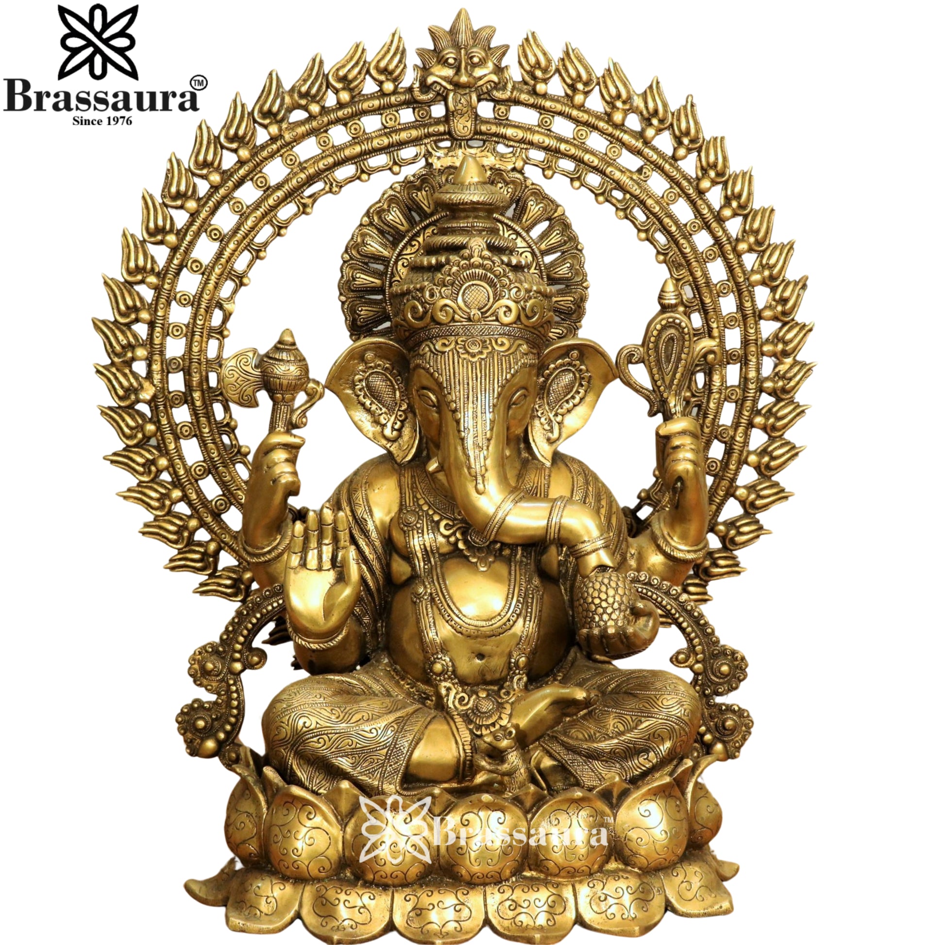 Brass Ring Ganesha Statue Weight 35 Kg & Height 26 Inch