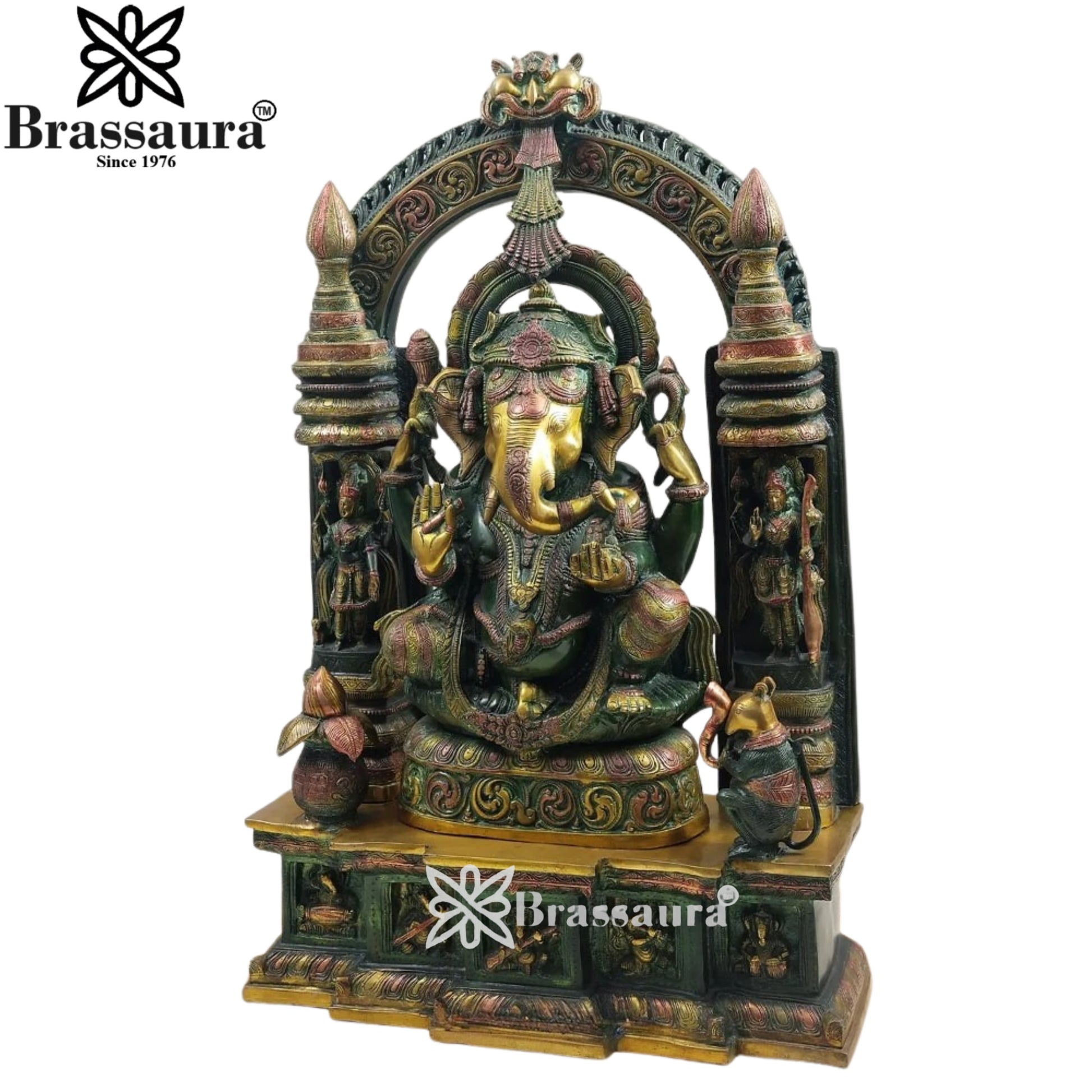 Brass Ring Ganesha Statue Weight 66 Kg And Height 34 Inch