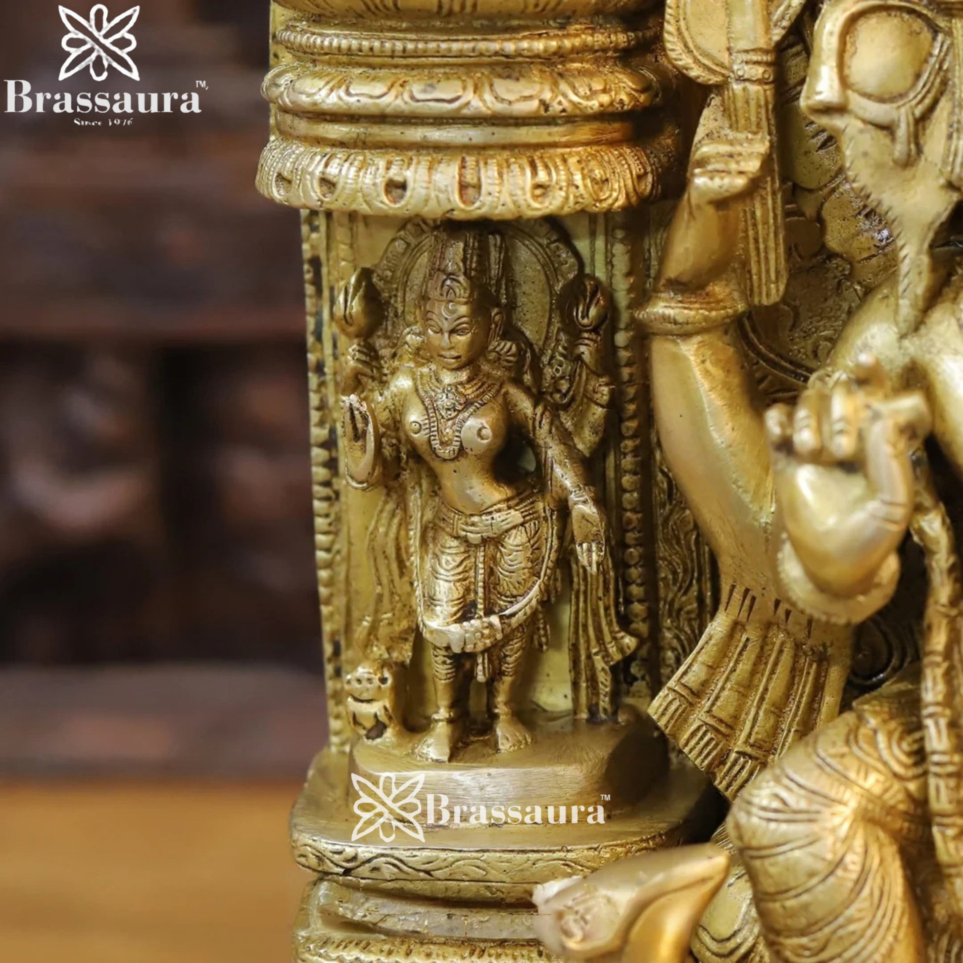 Standing 18.5 inches tall and weighing 19.32 kg, this intricately handcrafted piece is made from solid brass with antique-style detailing. Ideal as a spiritual centerpiece for temples, homes, or cultural spaces, it radiates blessings, protection, and timeless artistic beauty.
