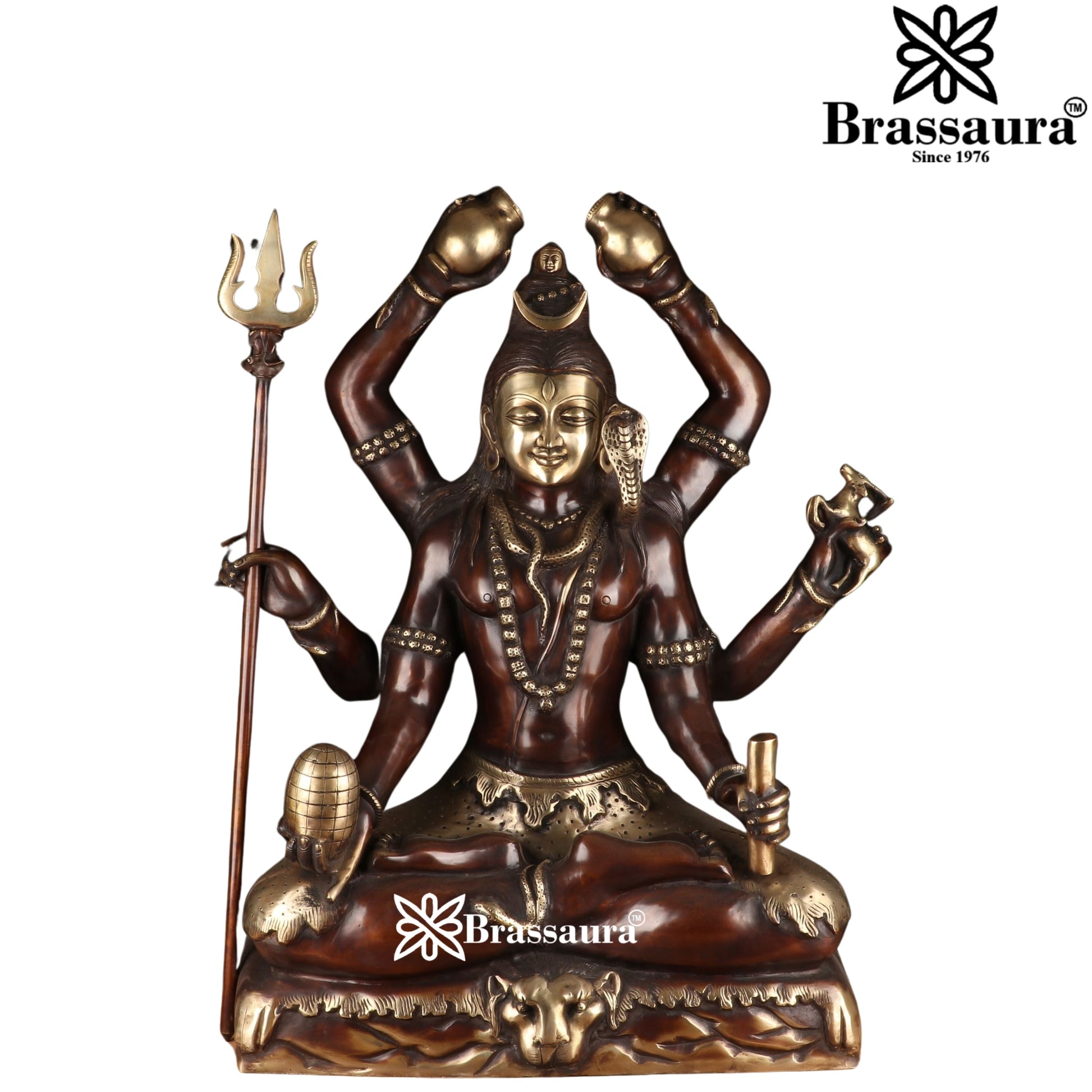 Brassaura™ Traditional Brass Lord Shiva Murti – Height 30" & Weight 48 Kgs | Sacred Home Accent