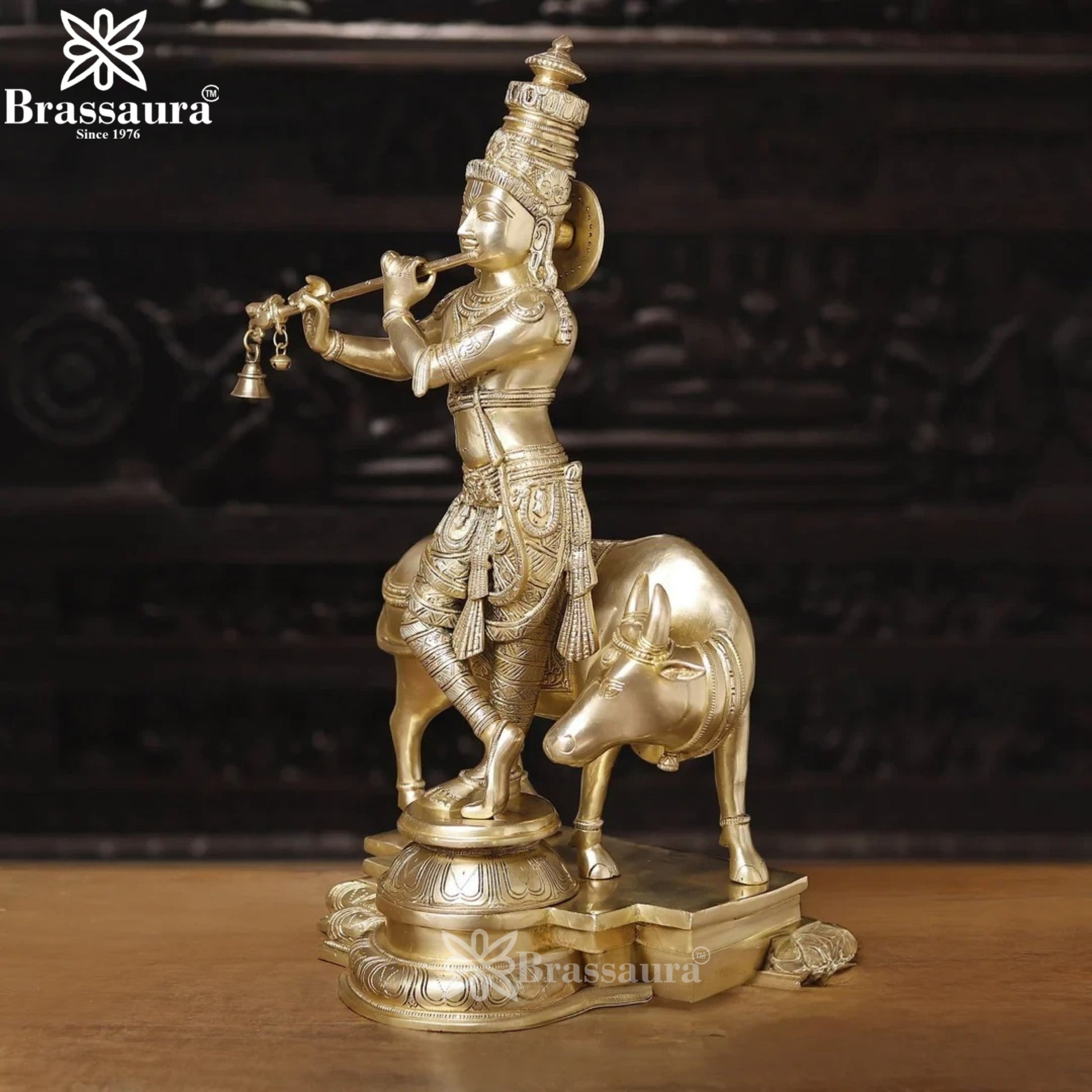 Brass Royal Gold Cow Krishna Murti (27.78 Kg, 26 Inch)