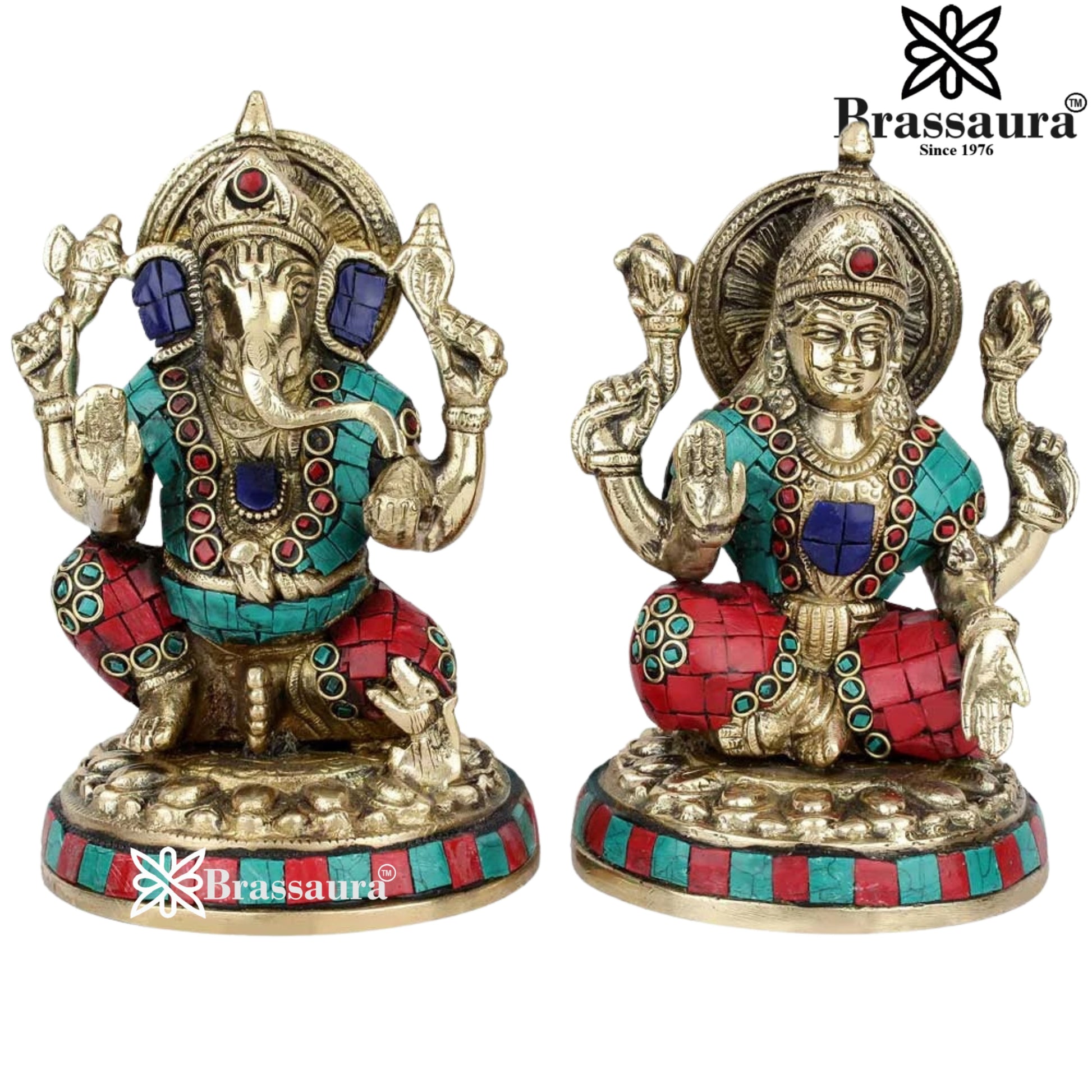 Brass Gem Stone Work Lakshmi Ganesh Weight 3.2 Kg & Height 6.5 Inch