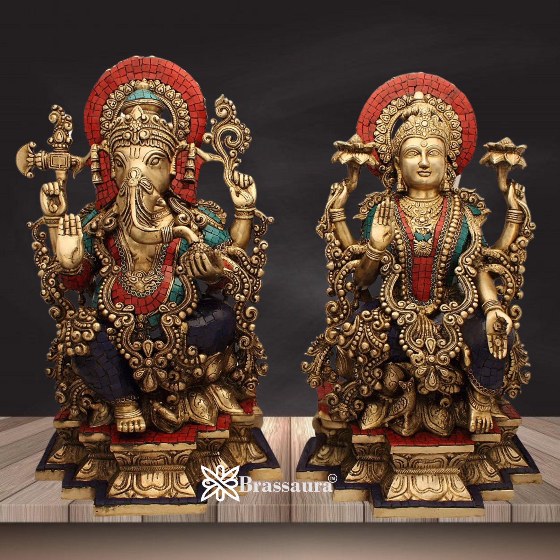 Brass Gem Stone Work Lakshmi Ganesh Weight 38 Kg & Height 19 Inch