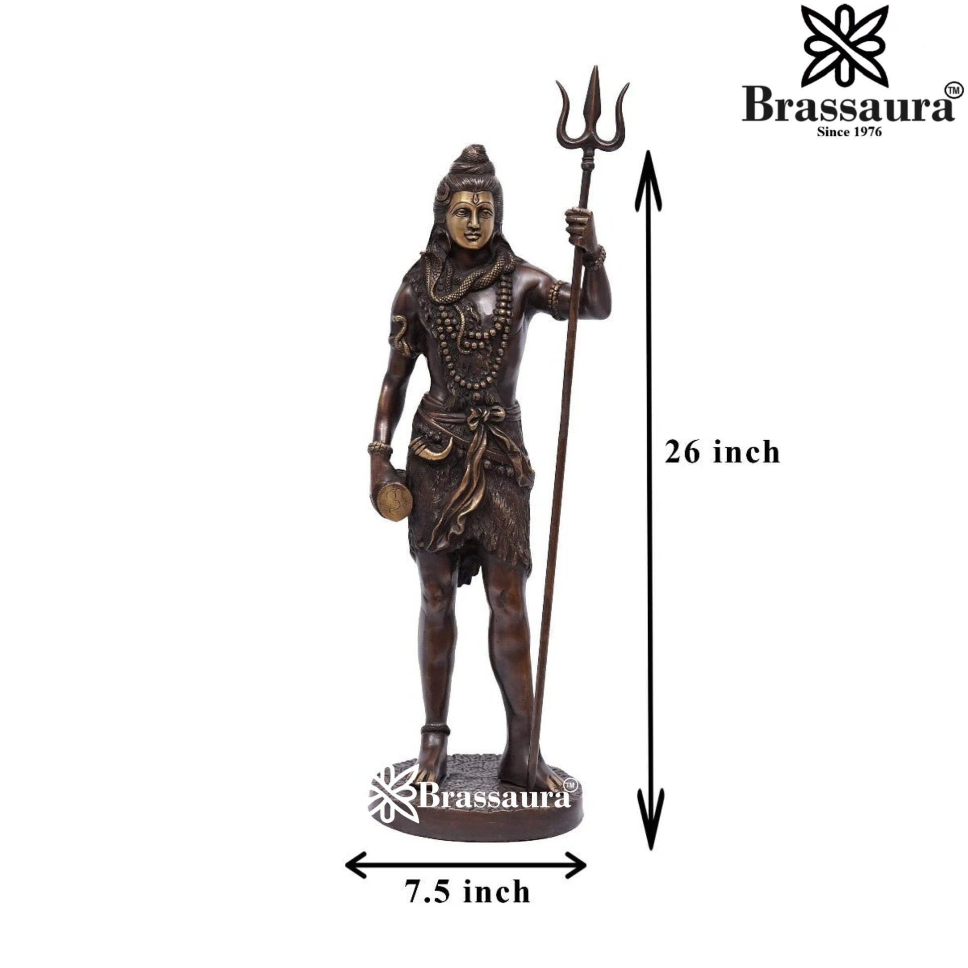 Brassaura™ Premium Brass Shiva Idol – Height 26 Inches & Weight 11 Kgs | Traditional Temple Statue