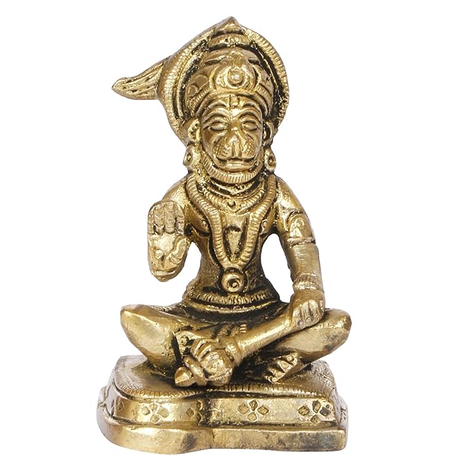 Brassaura™ Brass Hanuman Murti for Home Temple – Height 4.4 Inches & Weight 0.25 Kgs