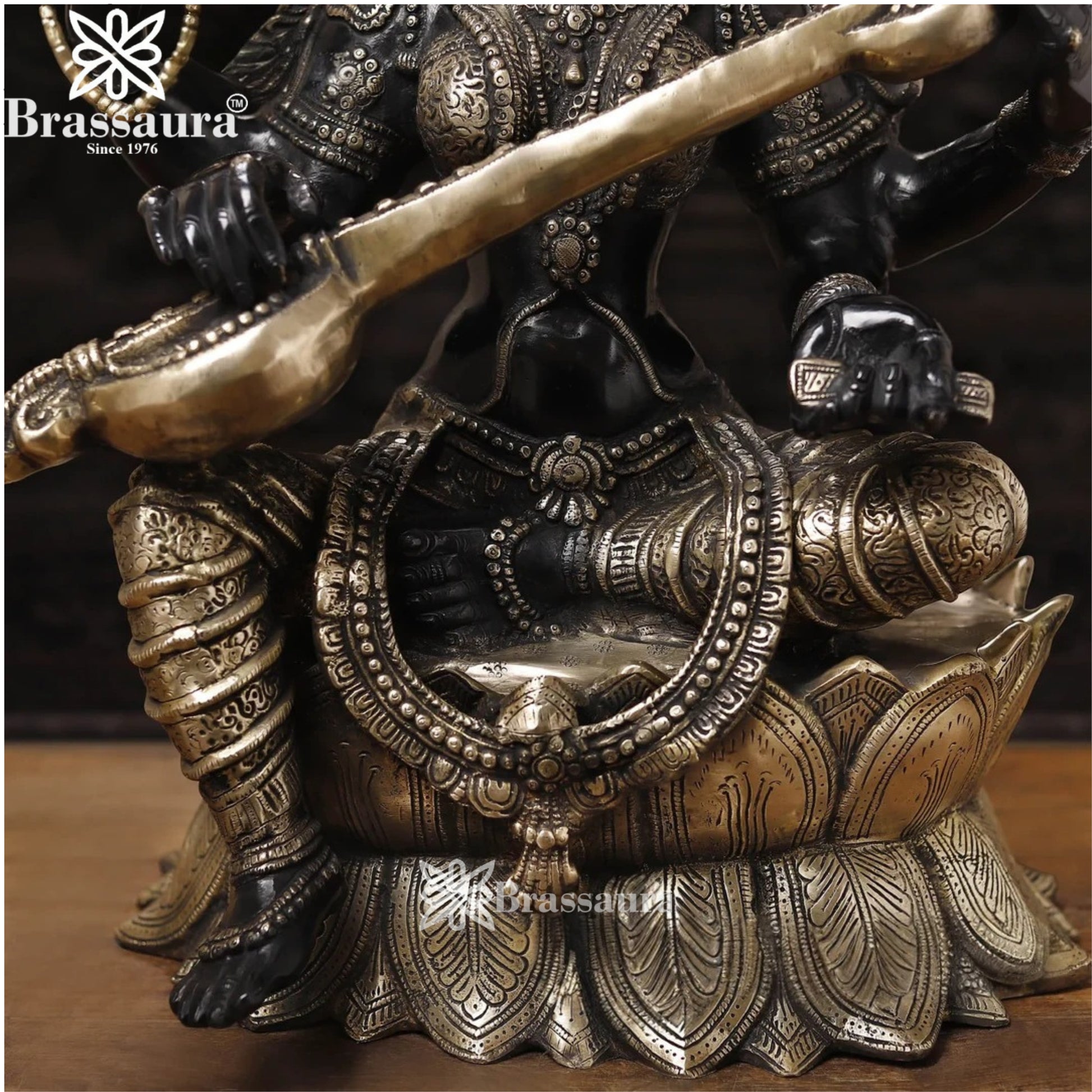 Brassaura™ Brass Saraswati Idol – Height 27 Inches & Weight 36.64 Kgs | Hindu Goddess Statue