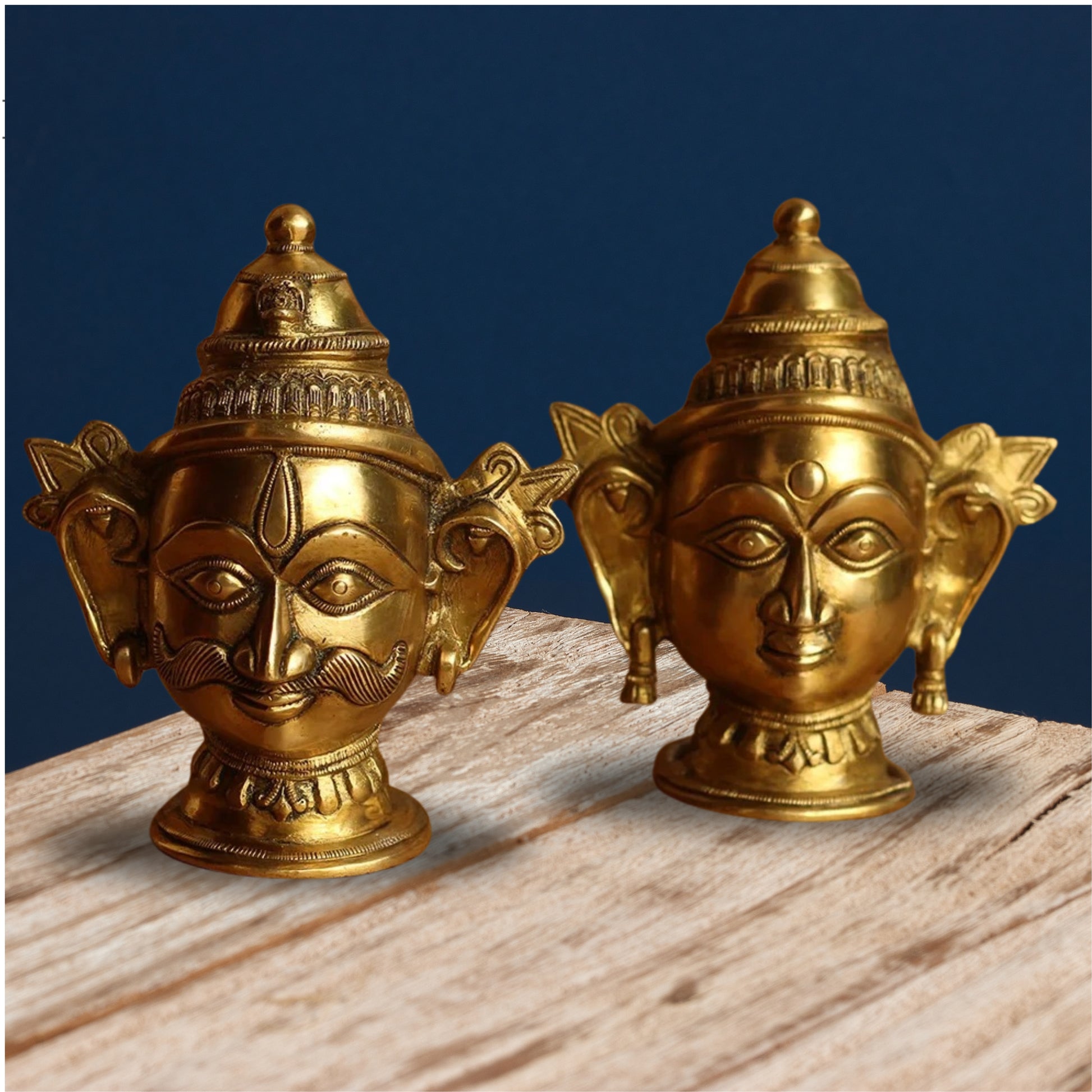 Brass Shiva & Parvati Mask Statue – 7 Inch | 1.96 Kg