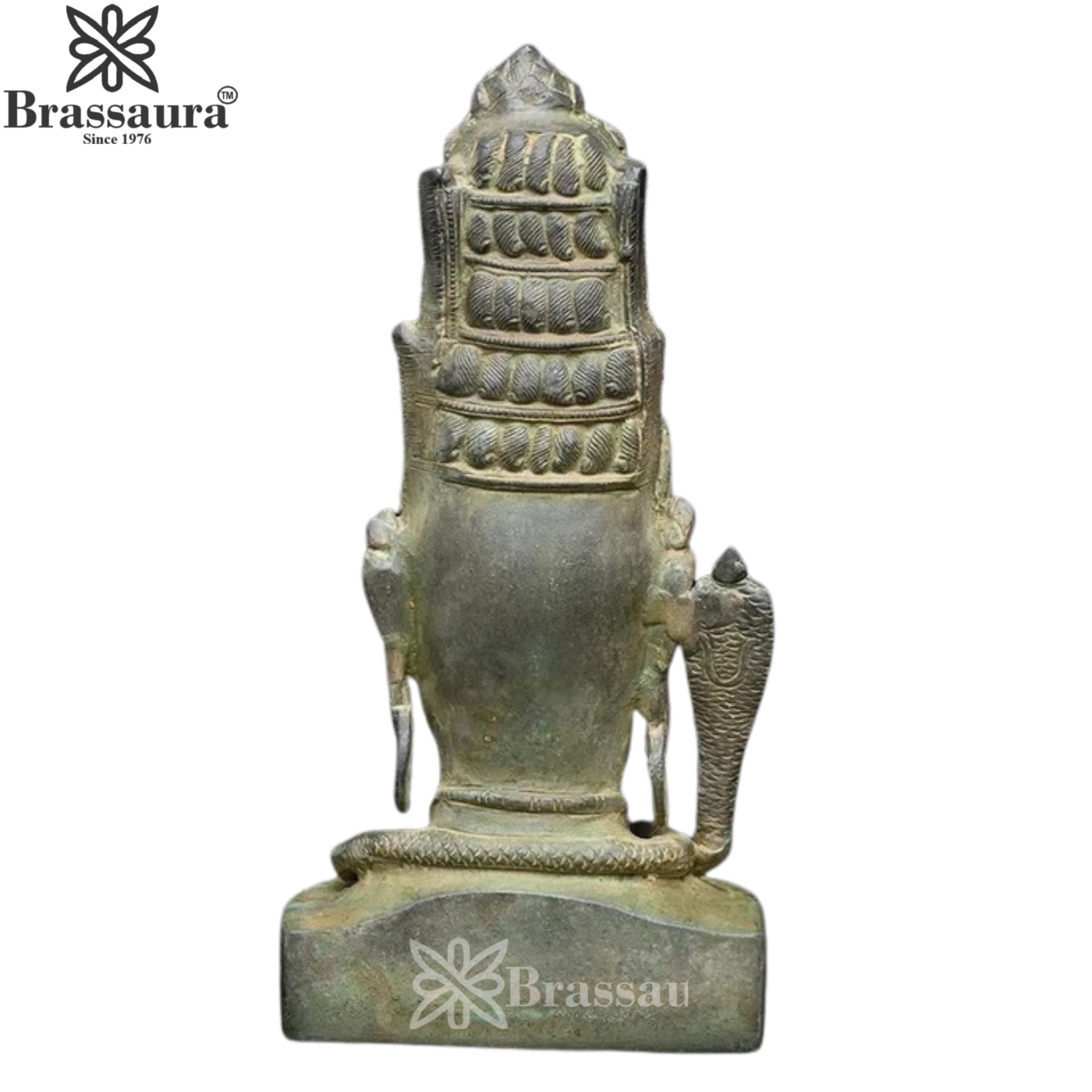 This stunning Brass Shiva Head Statue stands 11.9 inches tall and weighs 5.1 kg. Meticulously crafted from solid brass, the statue beautifully depicts Lord Shiva and Goddess Parvati seated together in divine harmony, symbolizing balance, unity, and the sacred bond of cosmic love. The intricate design and fine detailing bring out the divine expressions and spiritual grace of this eternal couple.