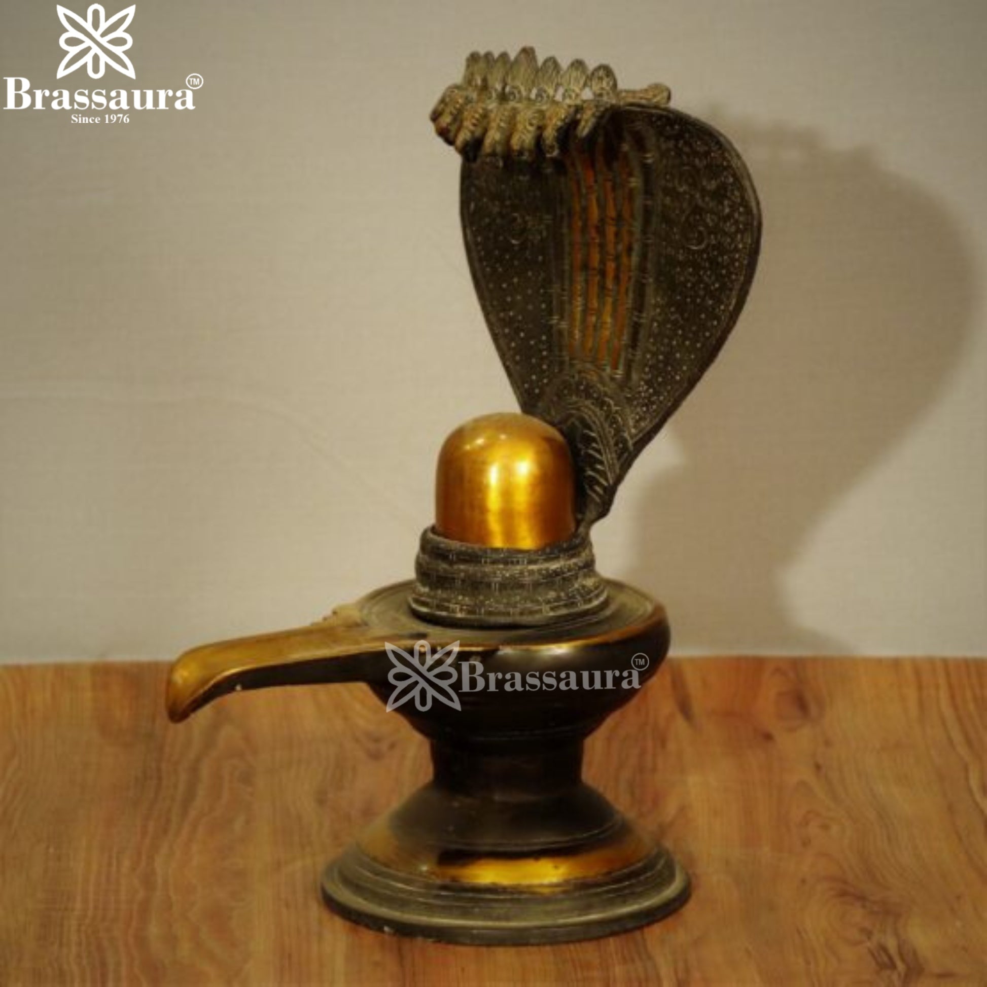 Brass Shivling with Naagraaj Statue – 13.5 Inch | 4.4 Kg