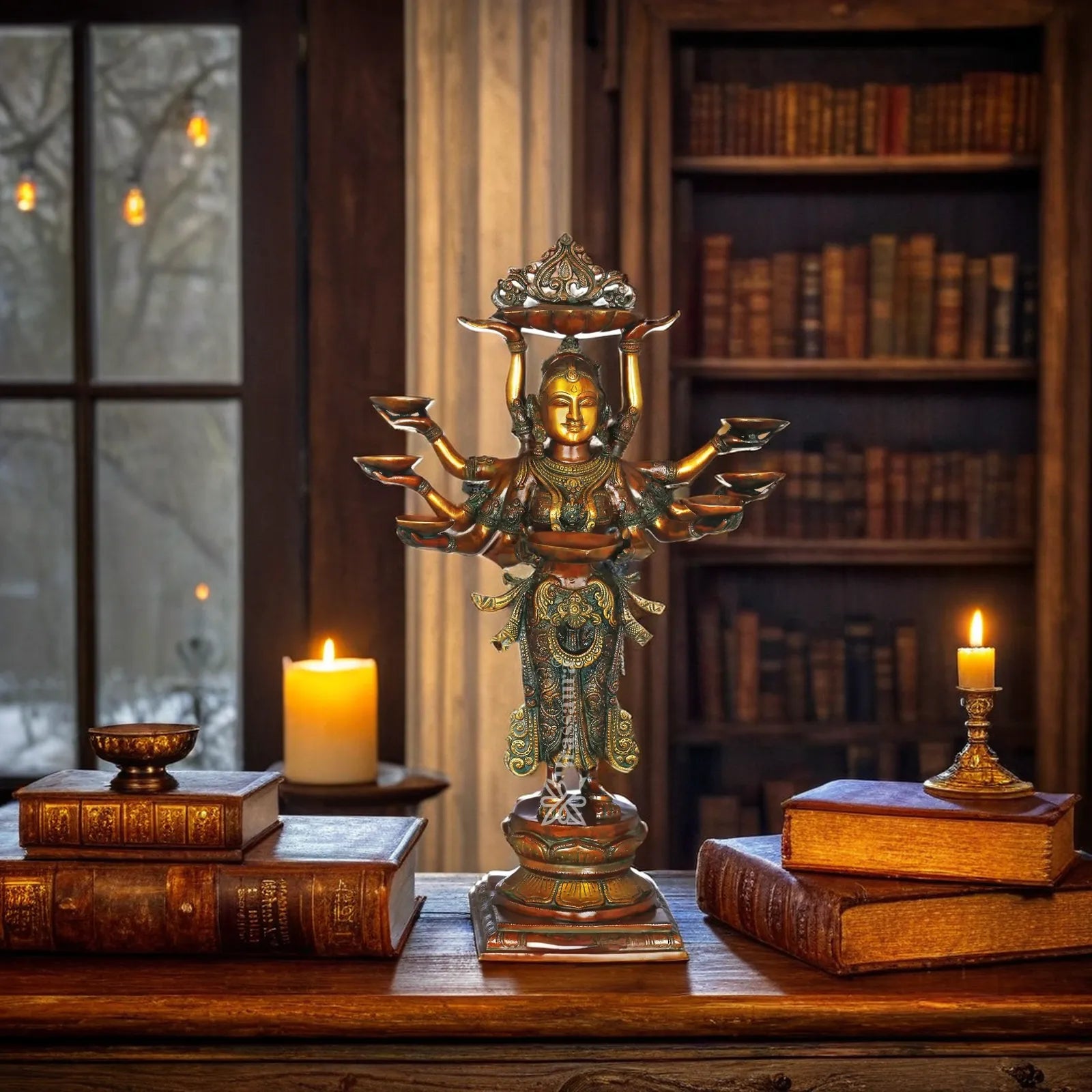 Brassaura™ Brass Standing Deep Laxmi With 8 Diya’s Statue– Height 27 Inches & Weight 15.5 Kgs | Home & Puja Décor