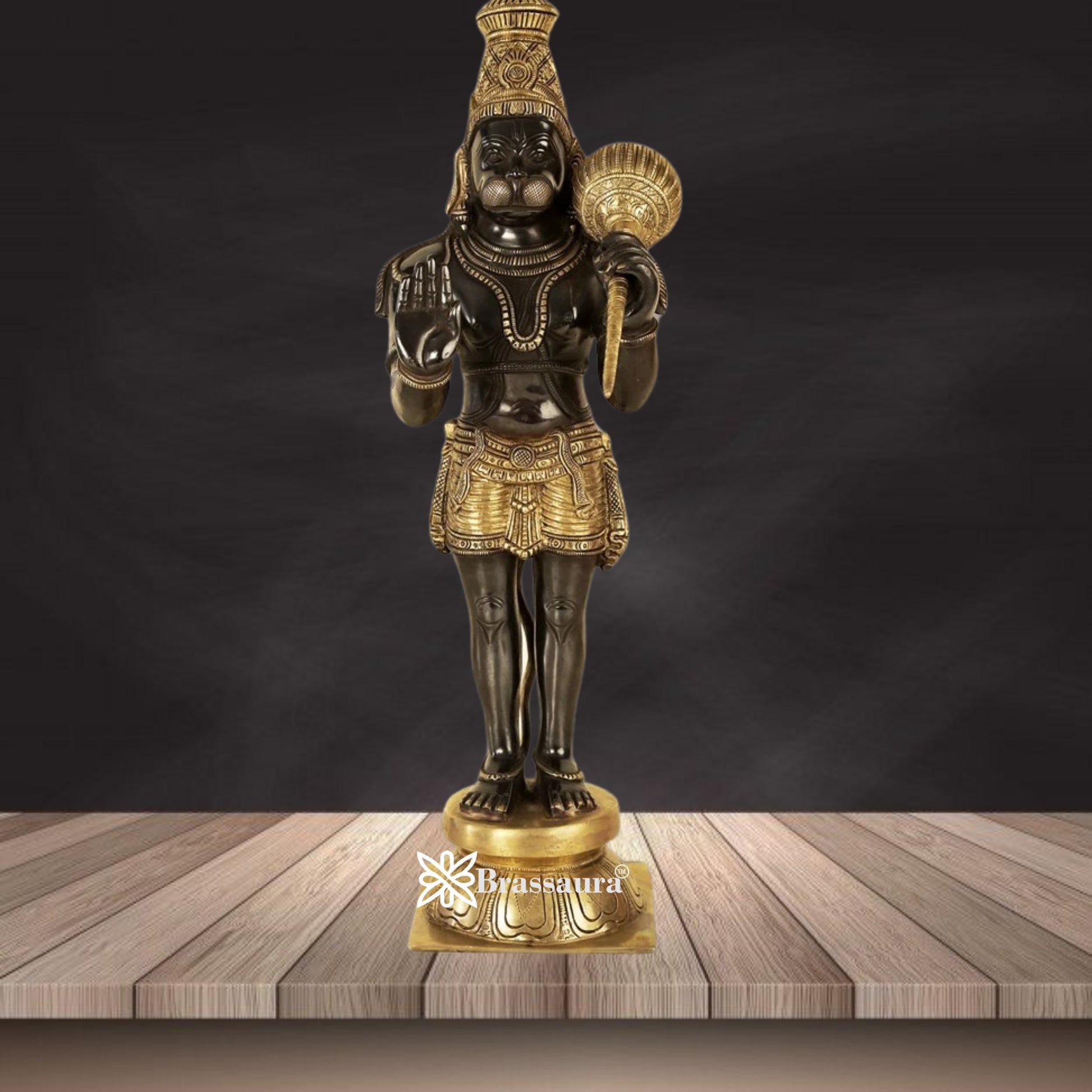 Brassaura™ Brass Standing Hanuman Murti with Intricate Design – Height 21 Inches & Weight 9.2 Kgs