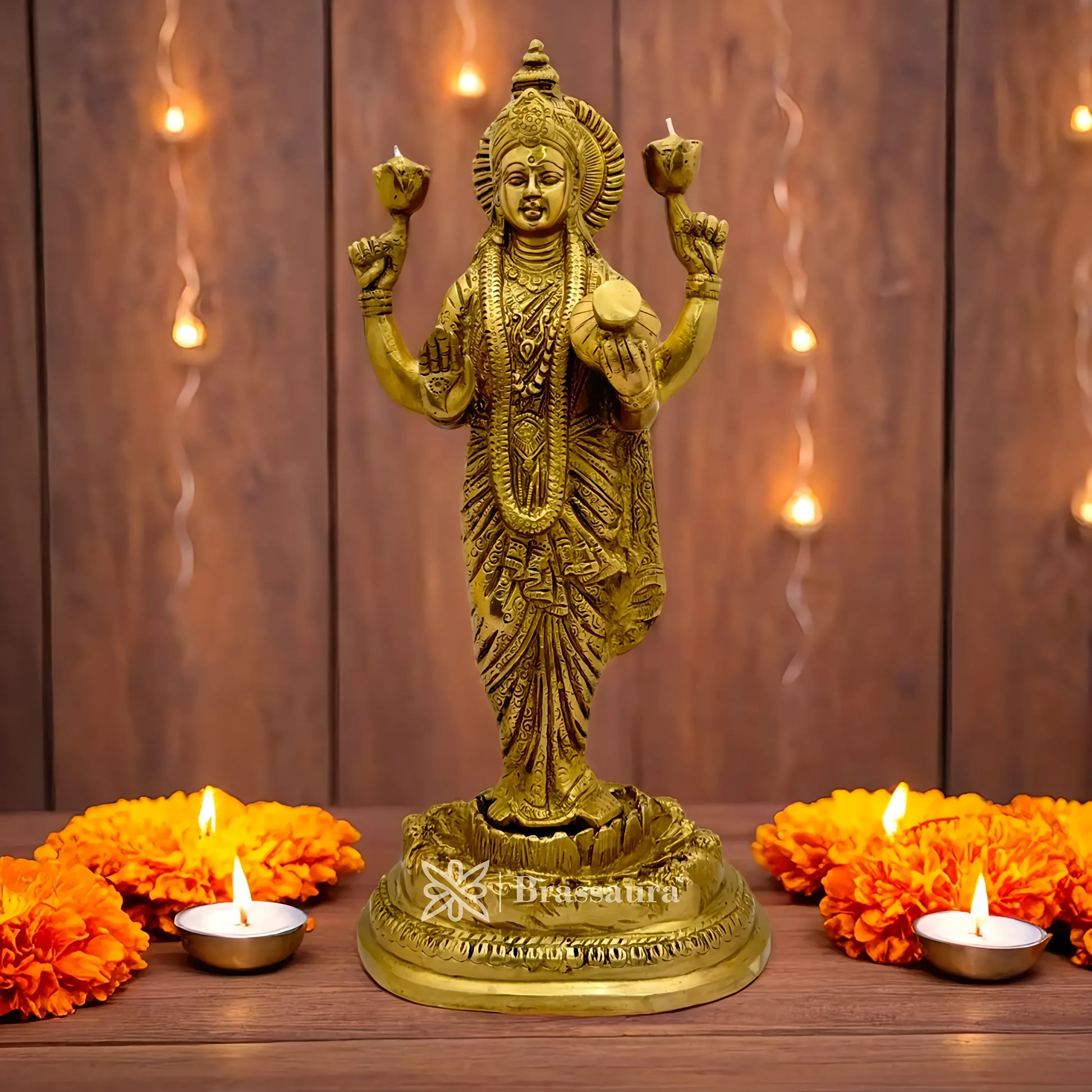 Brassaura™ Artistic Brass Laxmi Idol – Height 18 Inches & Weight 7 Kgs | Home & Puja Décor