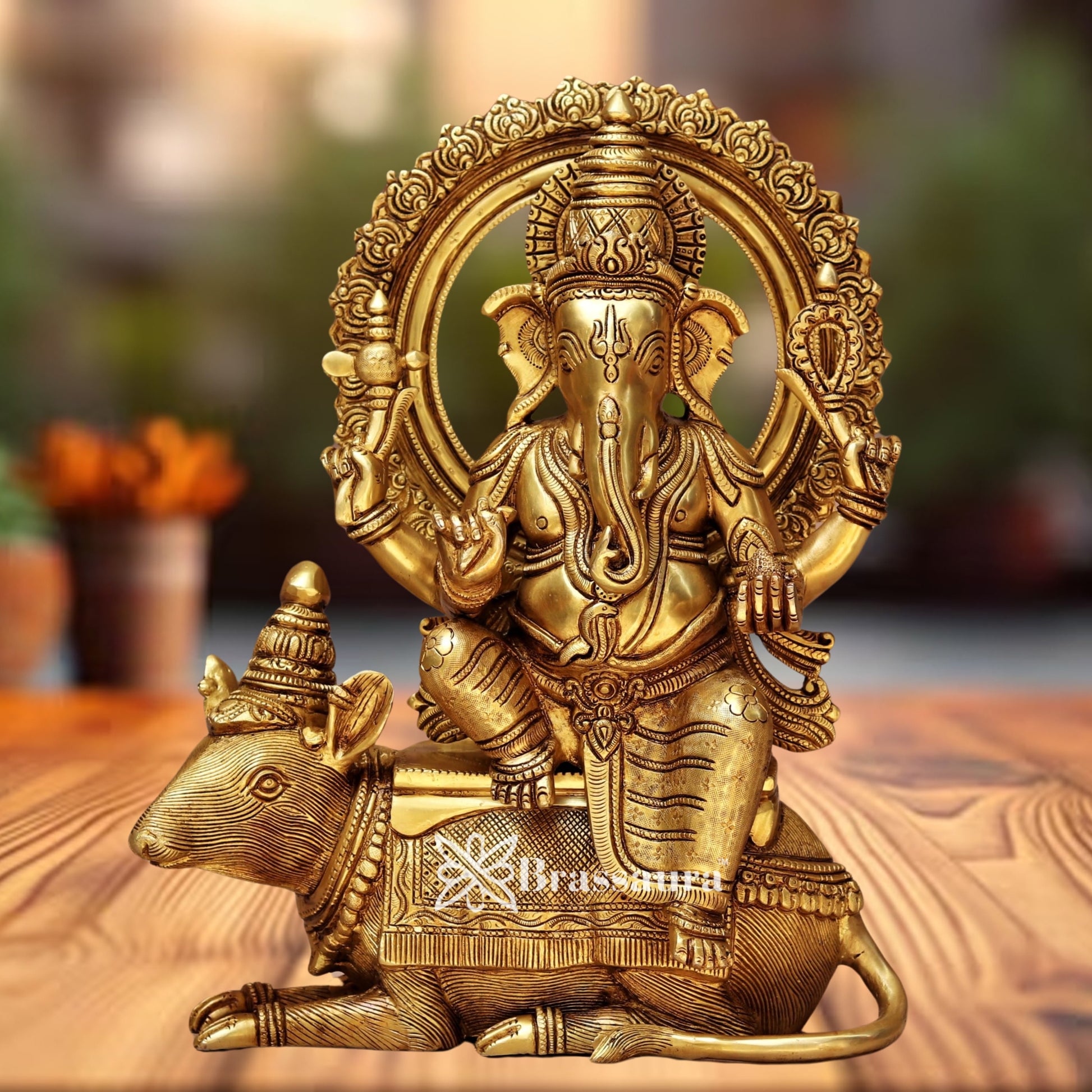 Brass Super fine Ganesha On Rat Statue Weight 14.2 Kg & Height 16 Inch