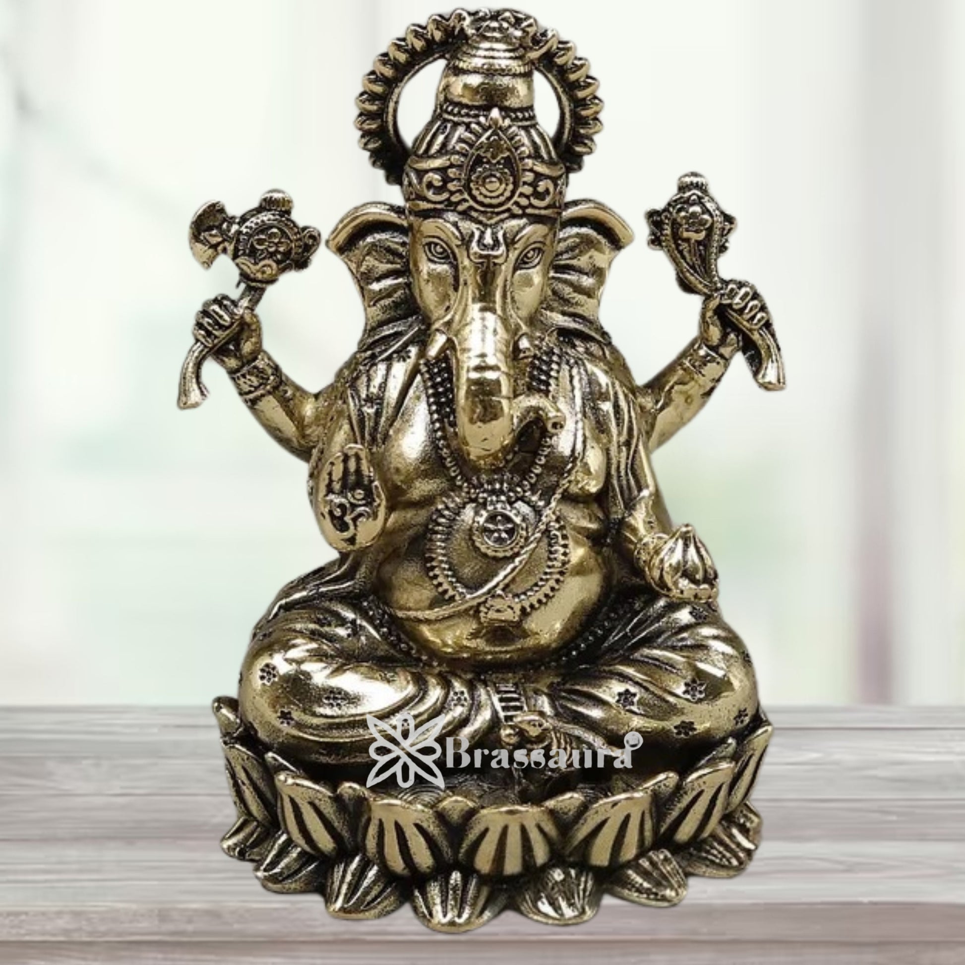 Experience the blessings of Lord Ganesha in a compact form with this Super Fine Brass Ganesha Statue, standing at just 2 inches and weighing 0.046 kg. Despite its small size, it embodies the powerful energy of Ganesha—symbolizing wisdom, protection, and the removal of obstacles.
