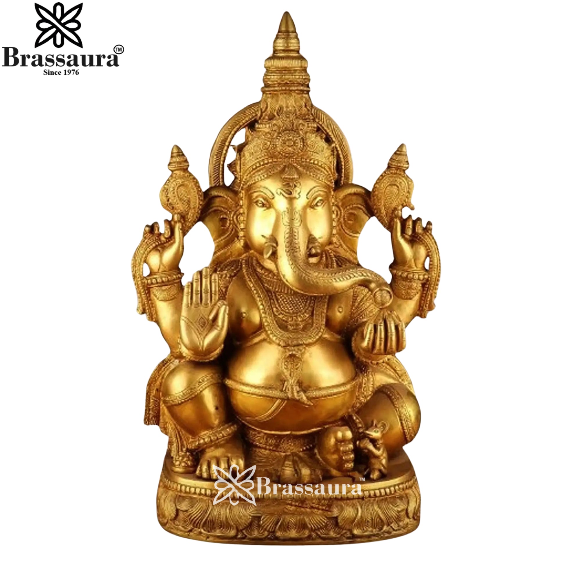Showcasing masterful craftsmanship and spiritual elegance, this Brass Super Fine Ganesha Statue is a striking symbol of wisdom, protection, and divine blessings.