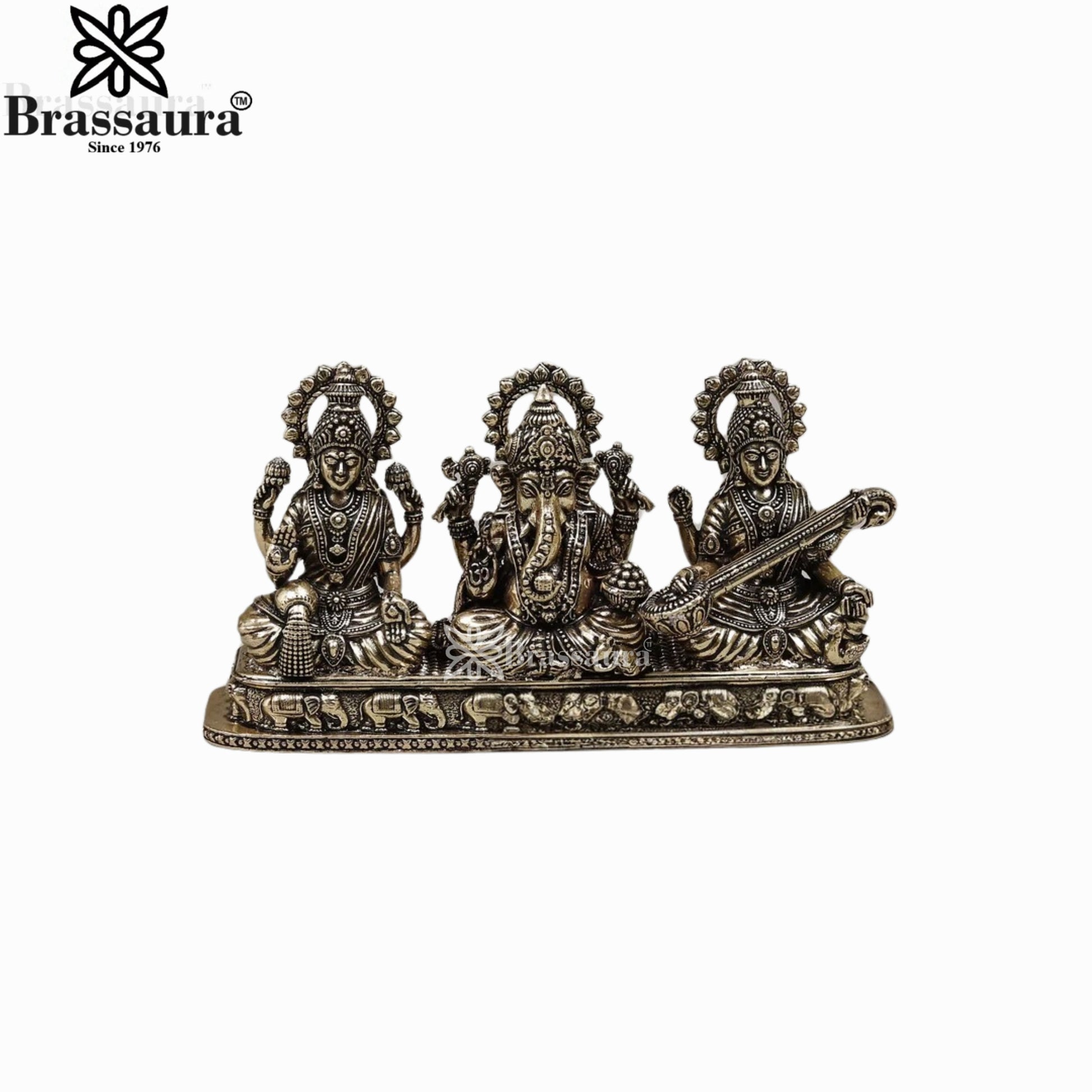 Brass Super Fine Lakshmi Ganesh Saraswati Murti – 276 gm, 3 Inches