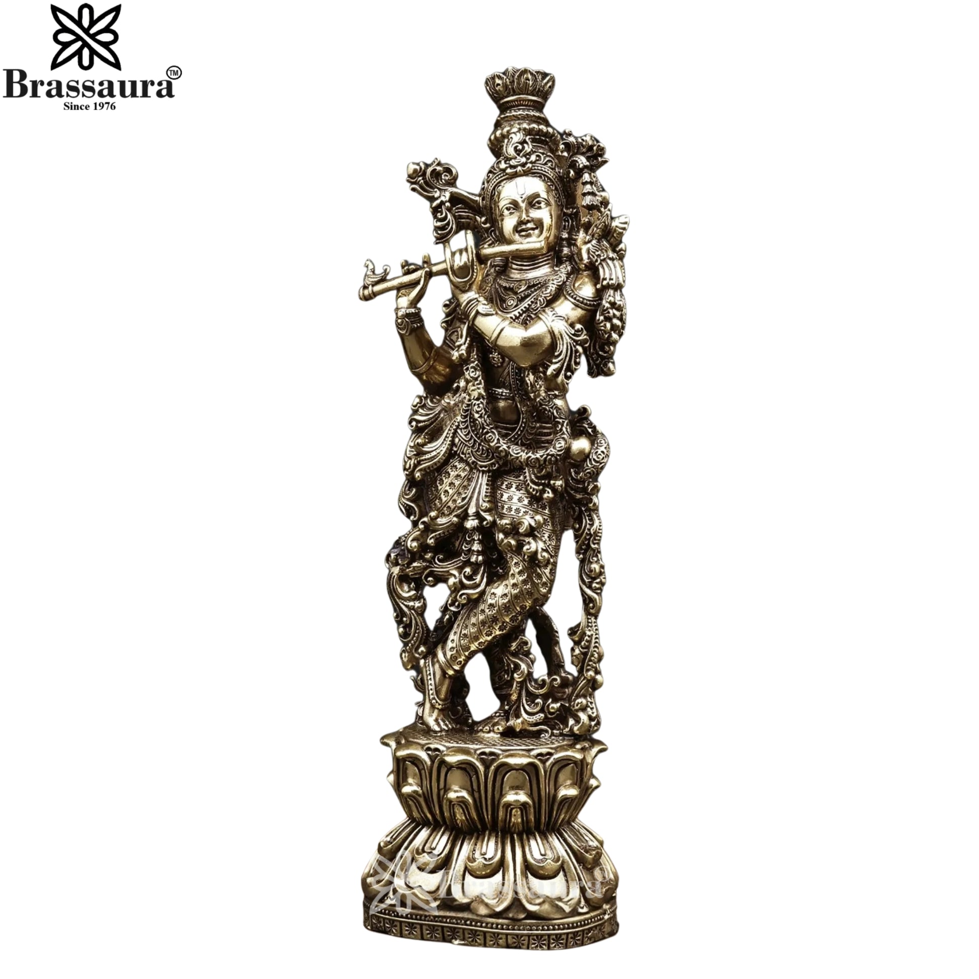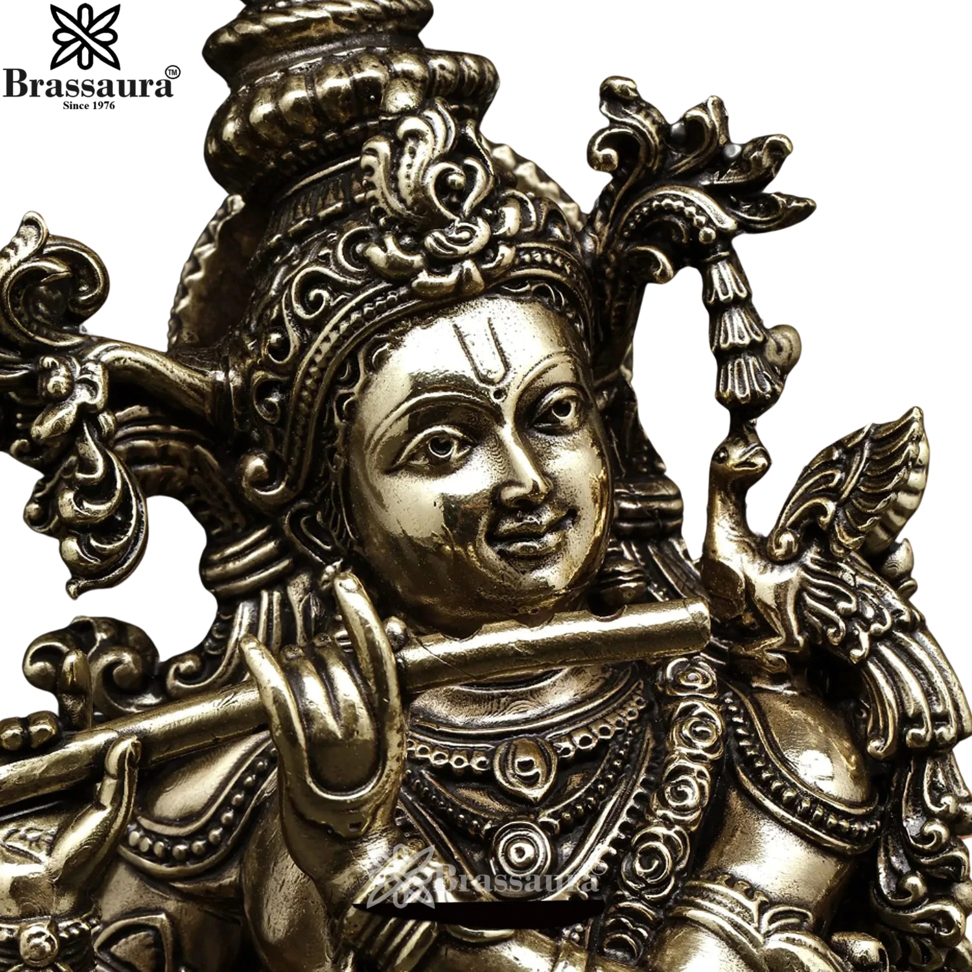 Brass Super Fine Murli Dhari Krishna Murti (1.1 Kg, 11 Inch)