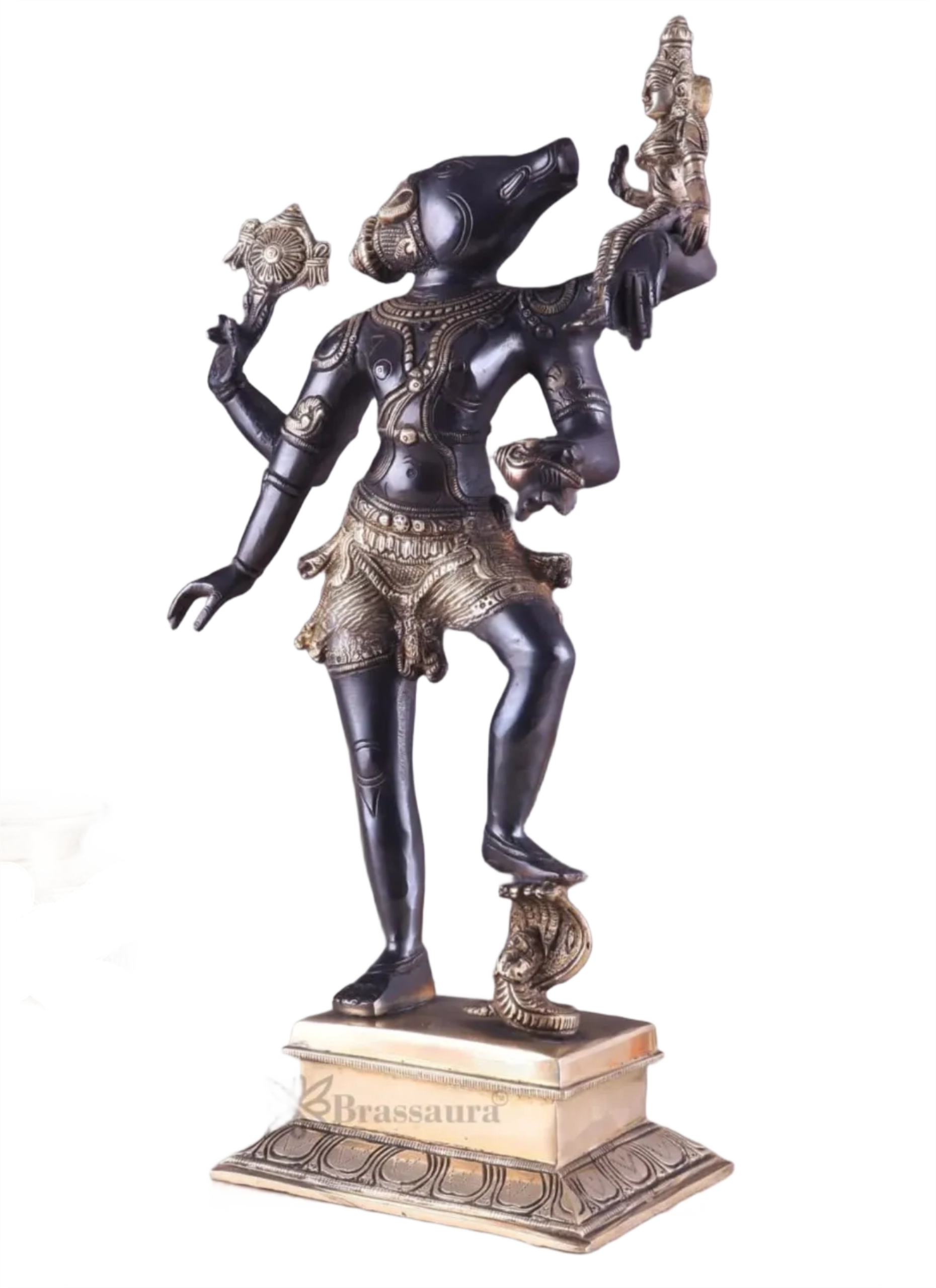 Brassaura™ Pure Brass Lord Narasimha Rescuing Bhooma Devi Idol – 17.5 Inch Height, 6.3 kg Weight | Handcrafted Hindu Statue for Pooja & Decor