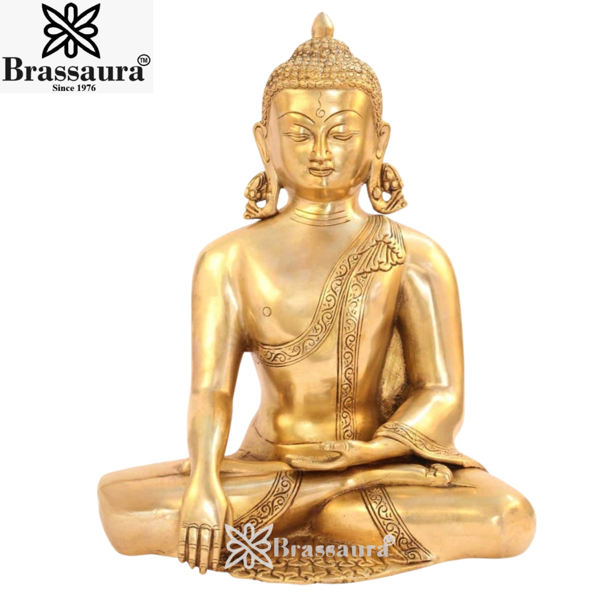 Radiating regal grace and spiritual depth, this Brass Vintage Royal Golden Buddha is a true statement of timeless devotion. Standing 13 inches tall and weighing 6 kg, it is meticulously handcrafted from solid brass and finished in a vintage-inspired golden polish that adds warmth, richness, and heritage charm.