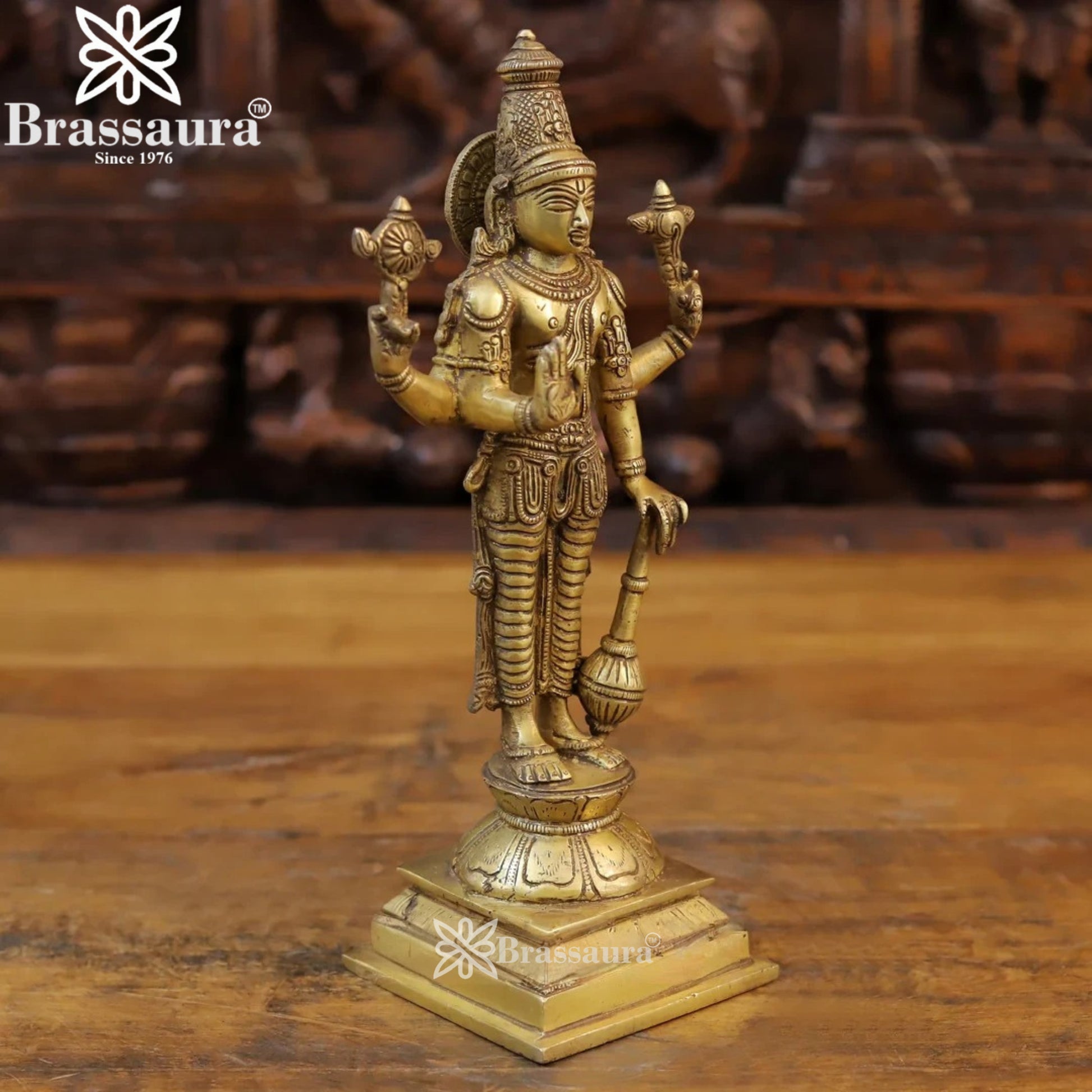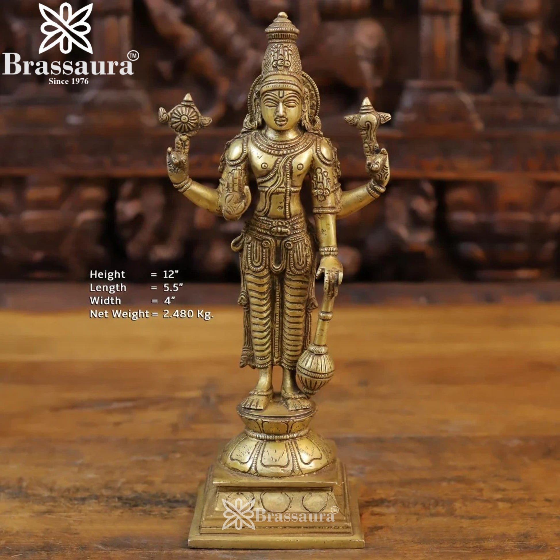Brass Vishnu Statue – 12 Inch | 2.48 Kg | Elegant Antique Finish