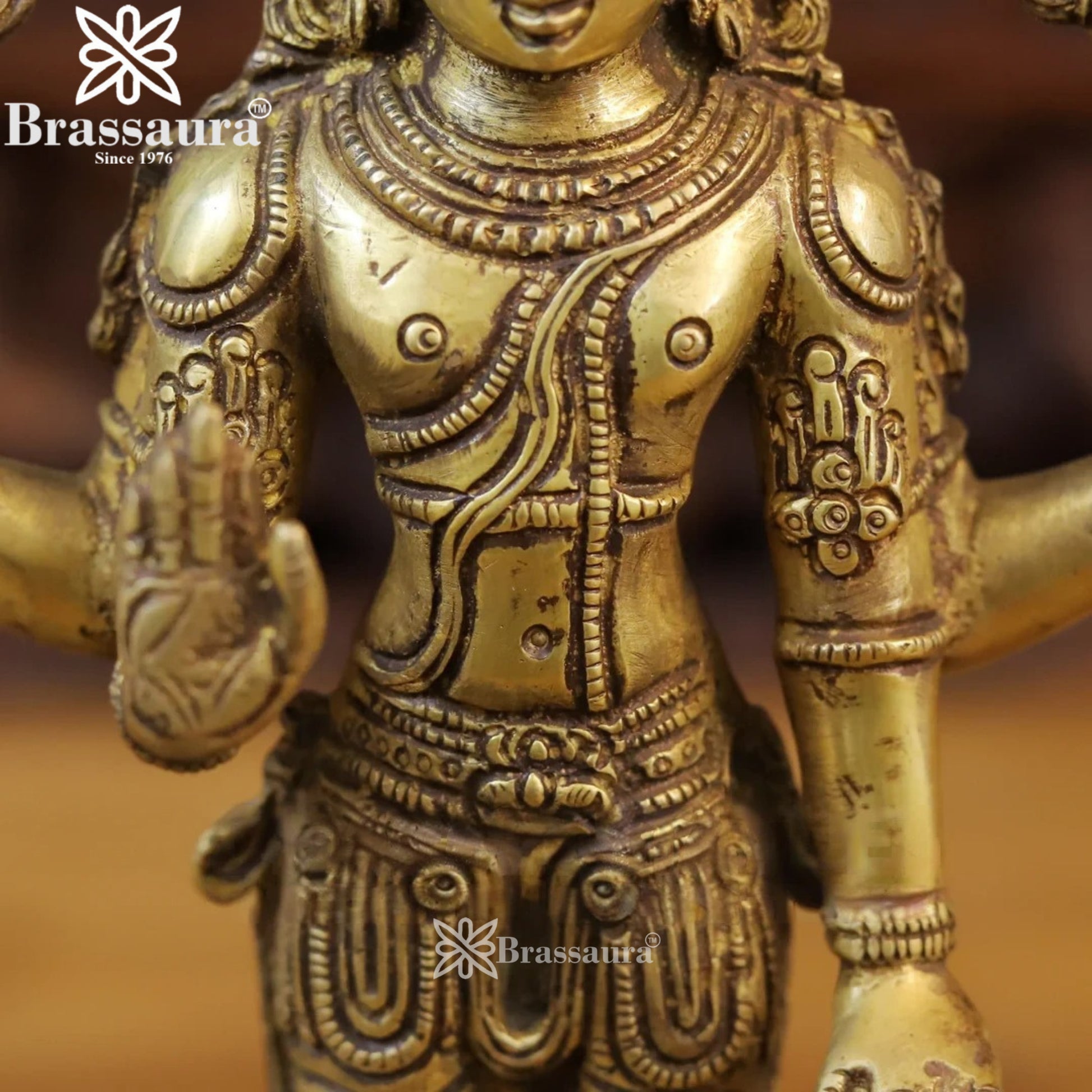 Finished in a classic antique polish, the fine detailing on Vishnu’s ornaments, posture, and expression showcases traditional craftsmanship. Perfectly sized for home altars, meditation spaces, or spiritual corners.