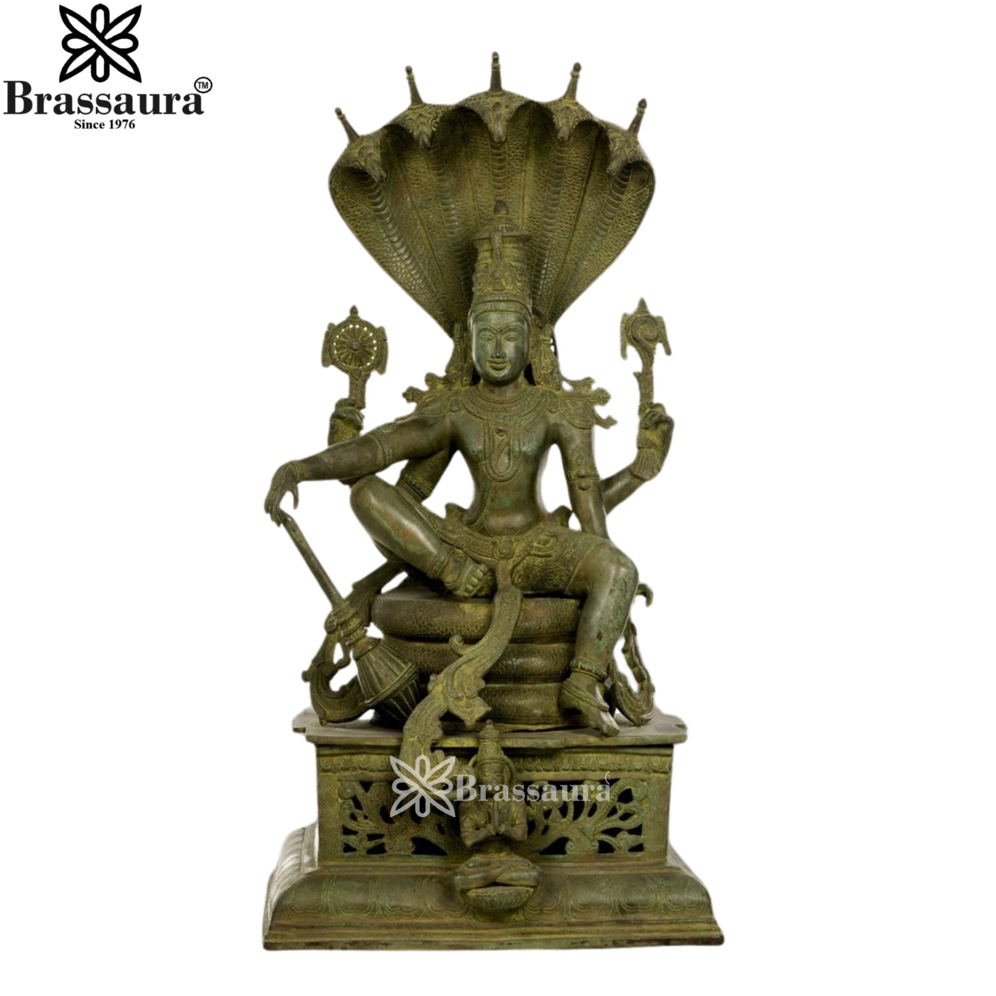 Brass Vishnu Statue – 28 Inch | 37 Kg | Regal Antique Finish