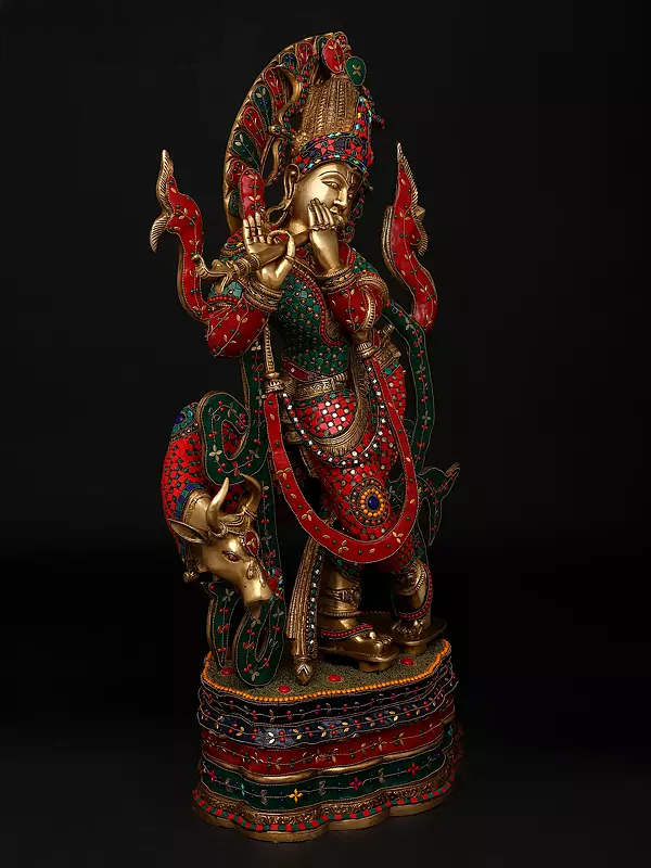 This majestic Brass Cow Krishna Statue beautifully portrays Lord Krishna with the sacred cow, symbolizing compassion, harmony, and divine protection. Handcrafted with rich detailing and a powerful presence, it is ideal for temples, meditation halls, and prominent spiritual spaces