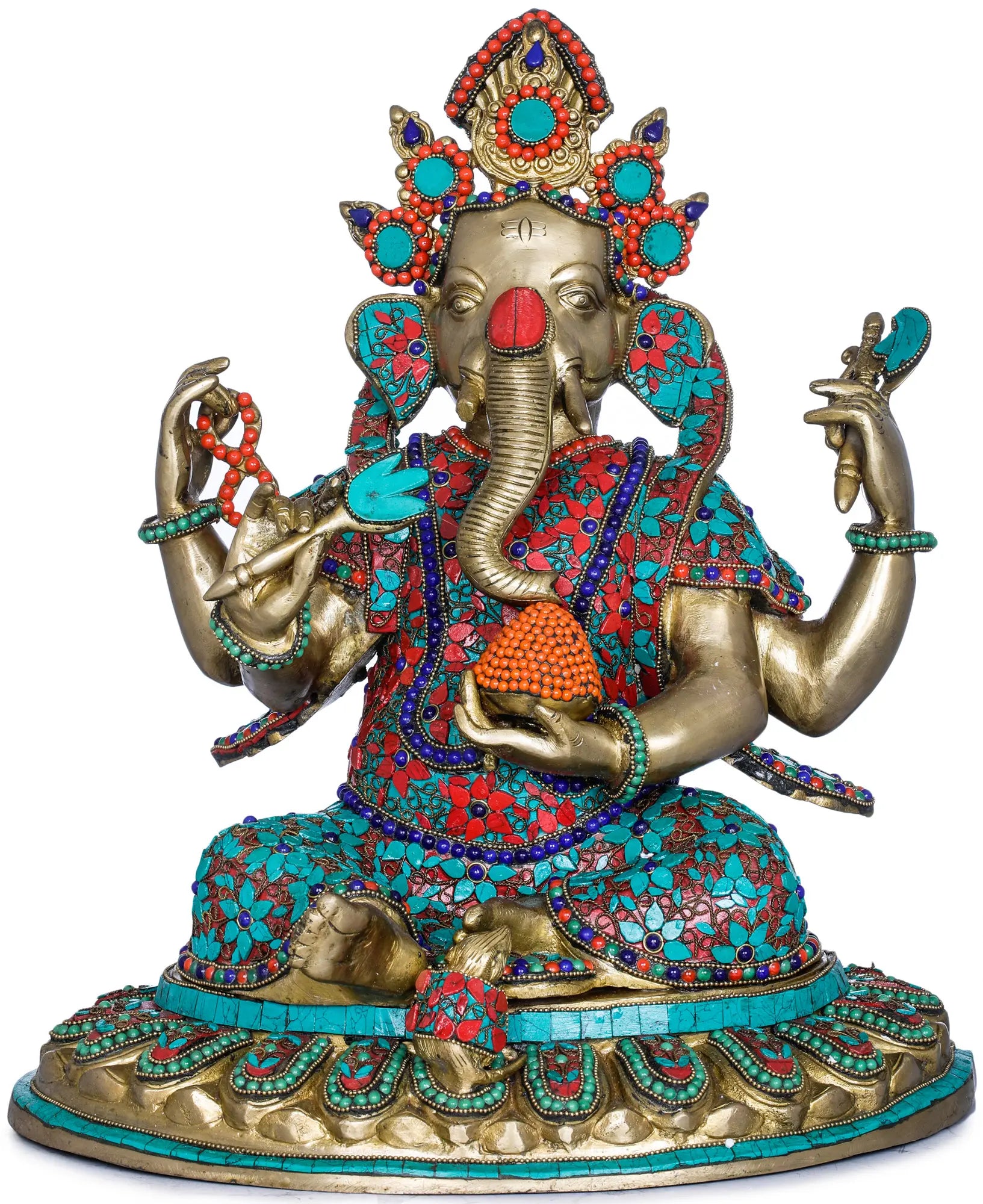 Brassaura® Meenakari Seated Ganesha Idol | Height 16.73 Inches & Weight 15.17 kgs