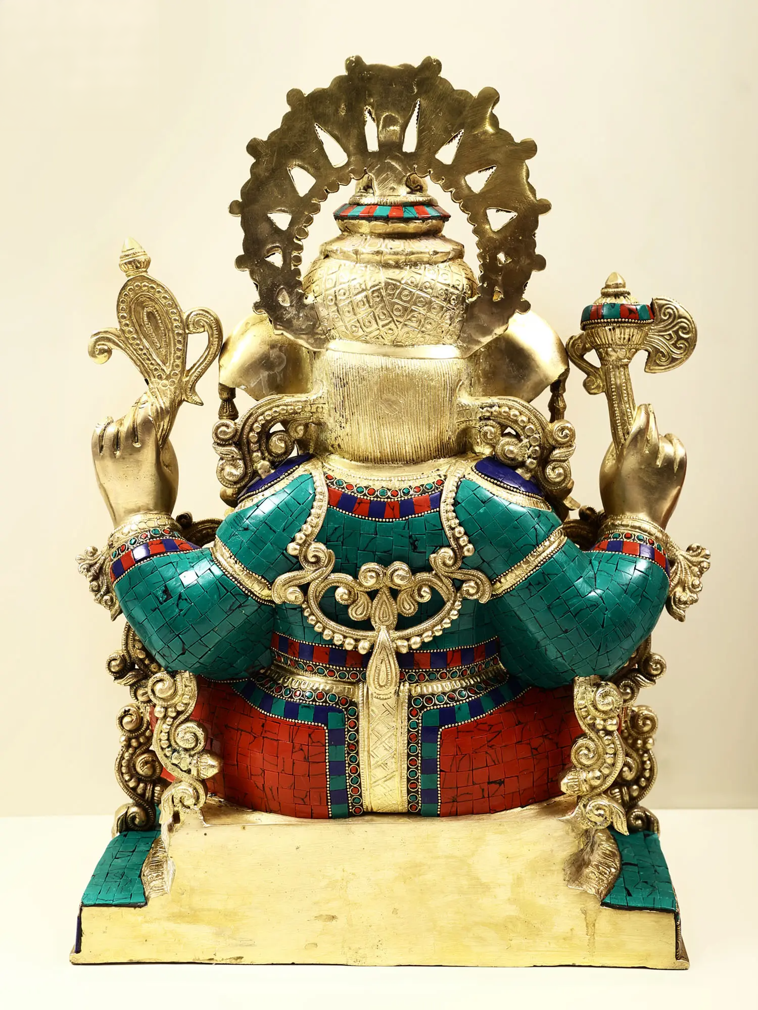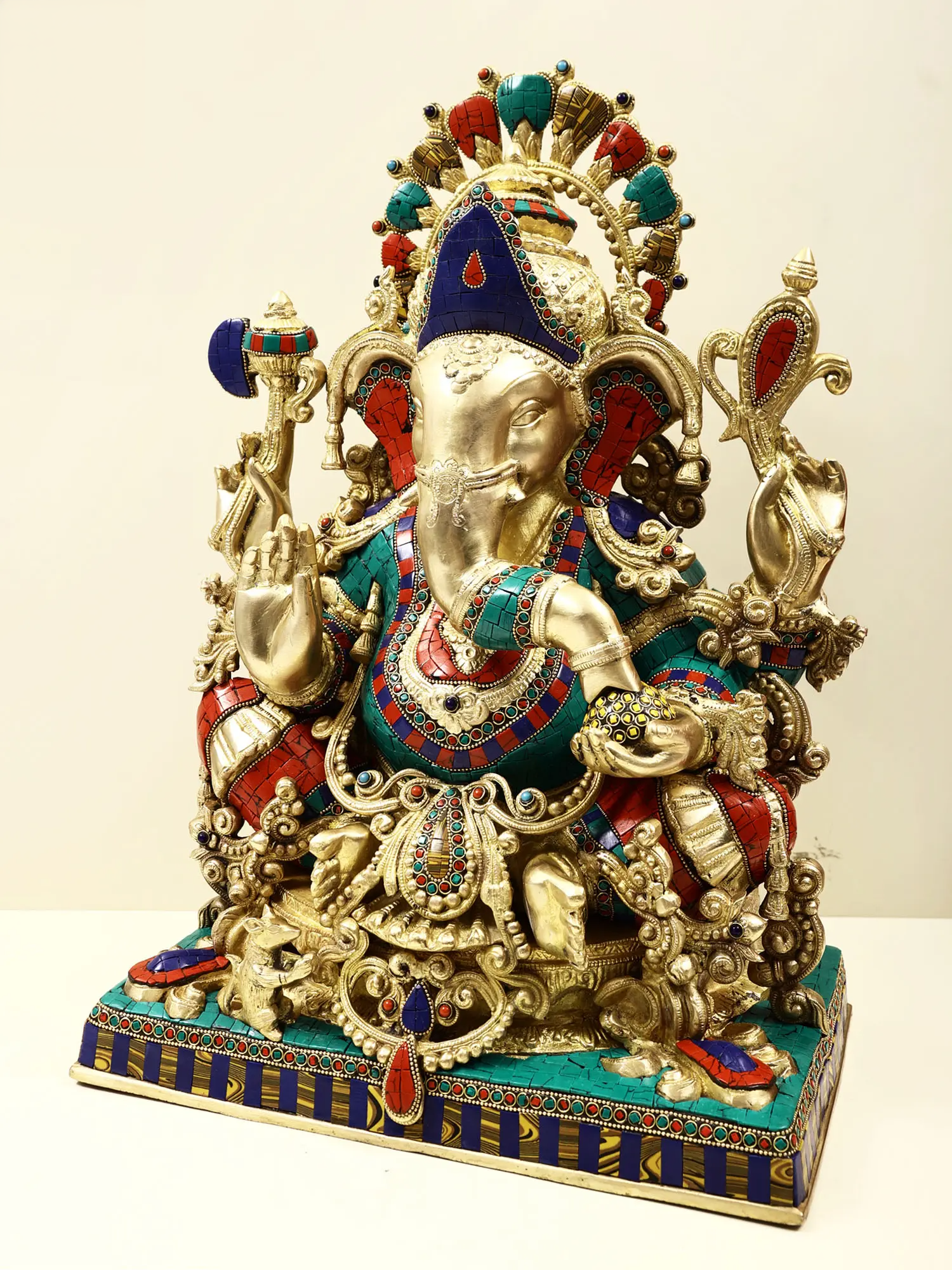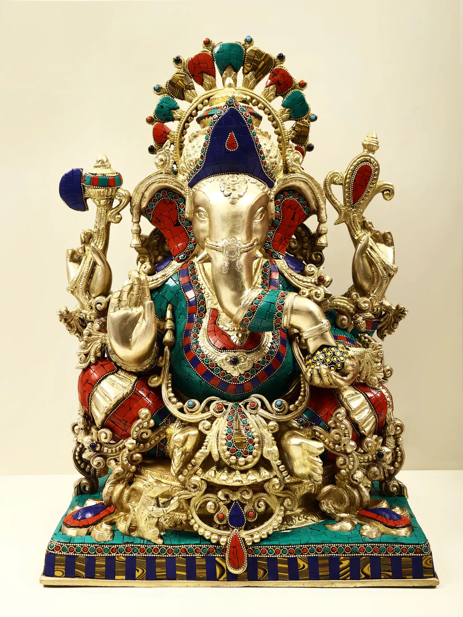 Brassaura® Meenakari Seated Lord Ganesha Idol | Height 20.28 Inches & Weight 28.50 kgs