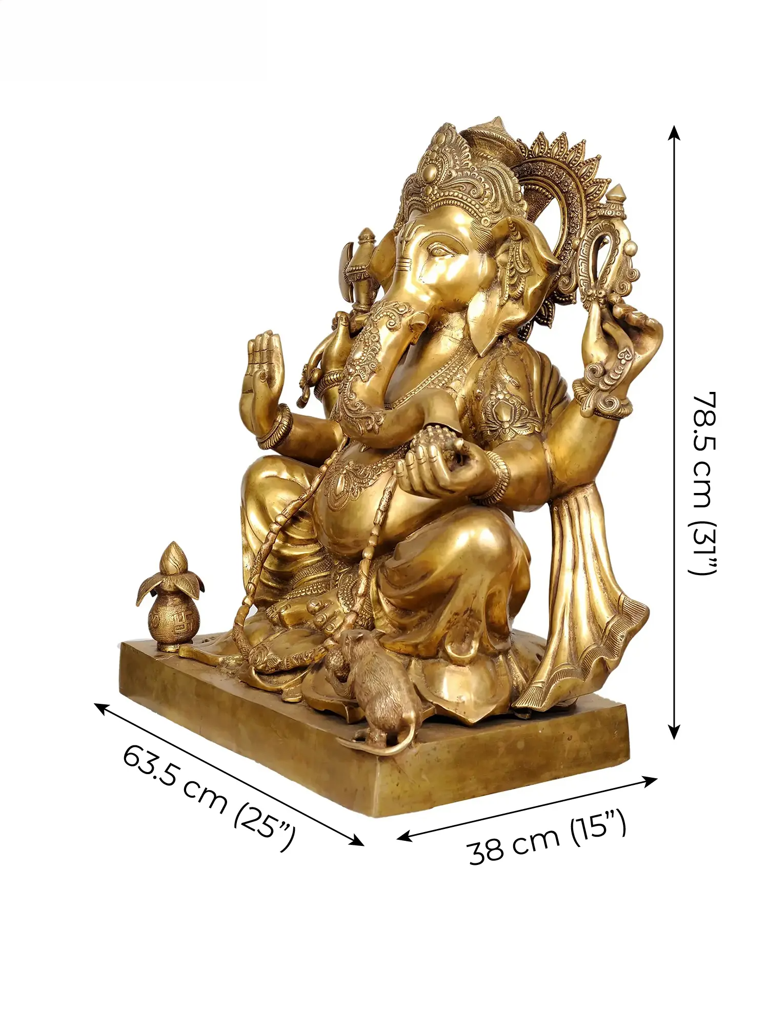 Brassaura® Majestic Seated Ganesha Brass Statue | Height 30.91 Inches & Weight 64.50 kgs
